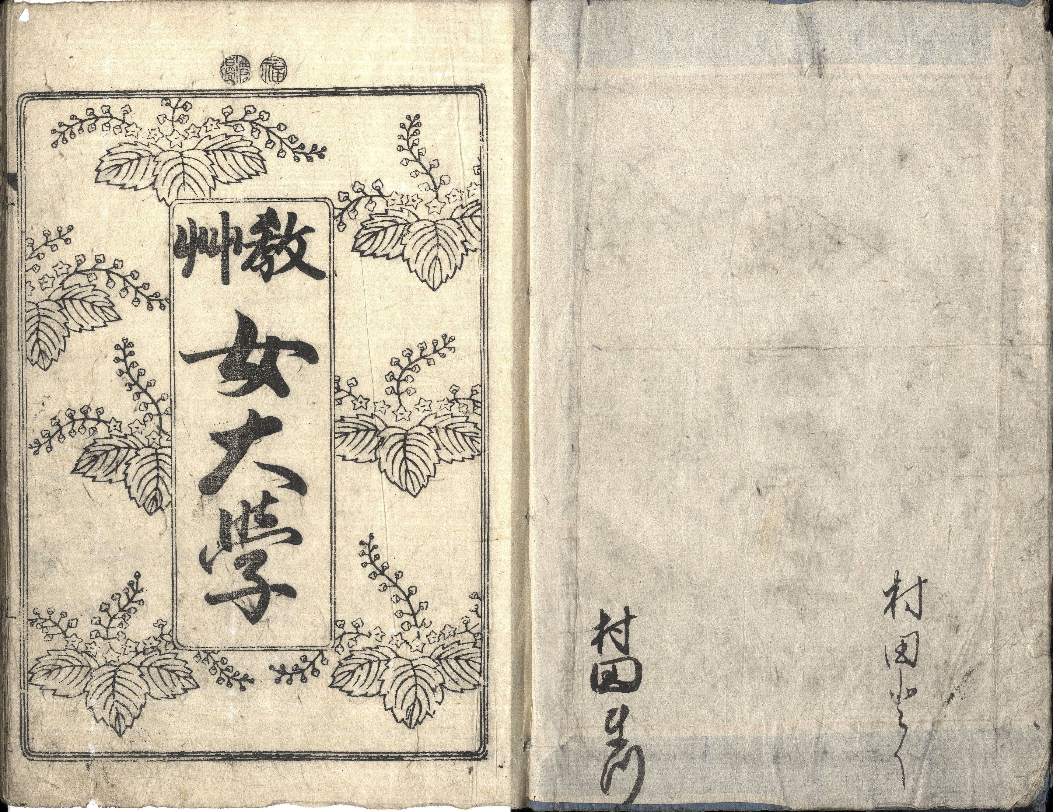 【備考】分類「往来物」。後半に「女今川」を増補した増補版を全冊収録、増補しないものを抄録した。単行刊本に安政の年号を付記するものがあるので、江戸後期初刊であろう。『女大学』は、第1条「親の教え」、第2条「女徳」、第3条「男女の別」、第4条「七去」、第5条「舅姑への孝」、第6条「夫への服従」、第7条「夫の兄弟との和睦」、第8条「嫉妬と諌言」、第9条「言葉の慎み」、第10条「家事への専念」ほか、第11条「信仰について」、第12条「分限に基づく家政」、第13条男女の隔て」、第14条「衣服の心得」、第15条「親戚付き合い」、第16条「舅姑への孝と婚姻後の心得」、第17条「家事は自らなせ」、第18条「下女を使う心得」、第19条「婦人の心の五病」で、後文には以上の条々を幼時よりよく学ぶことが女子生涯の宝となることを強調して締め括る。