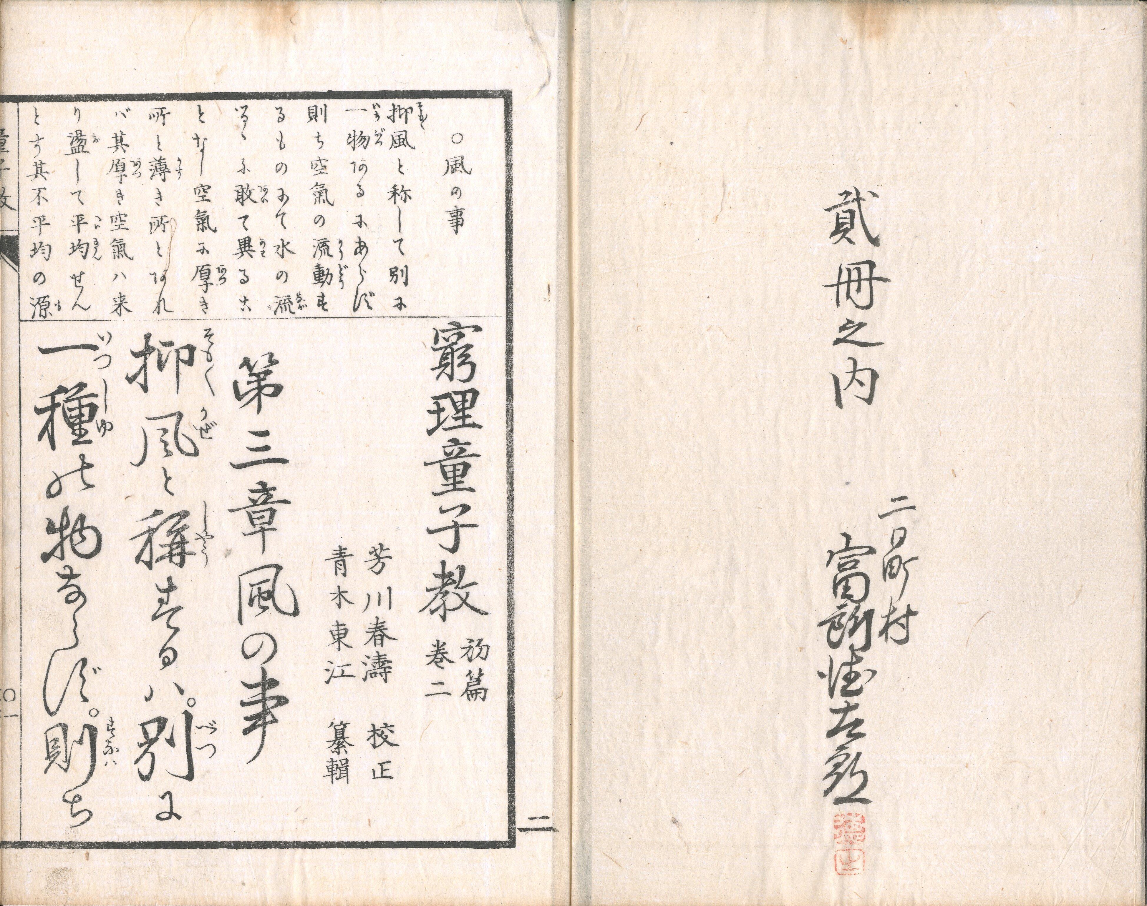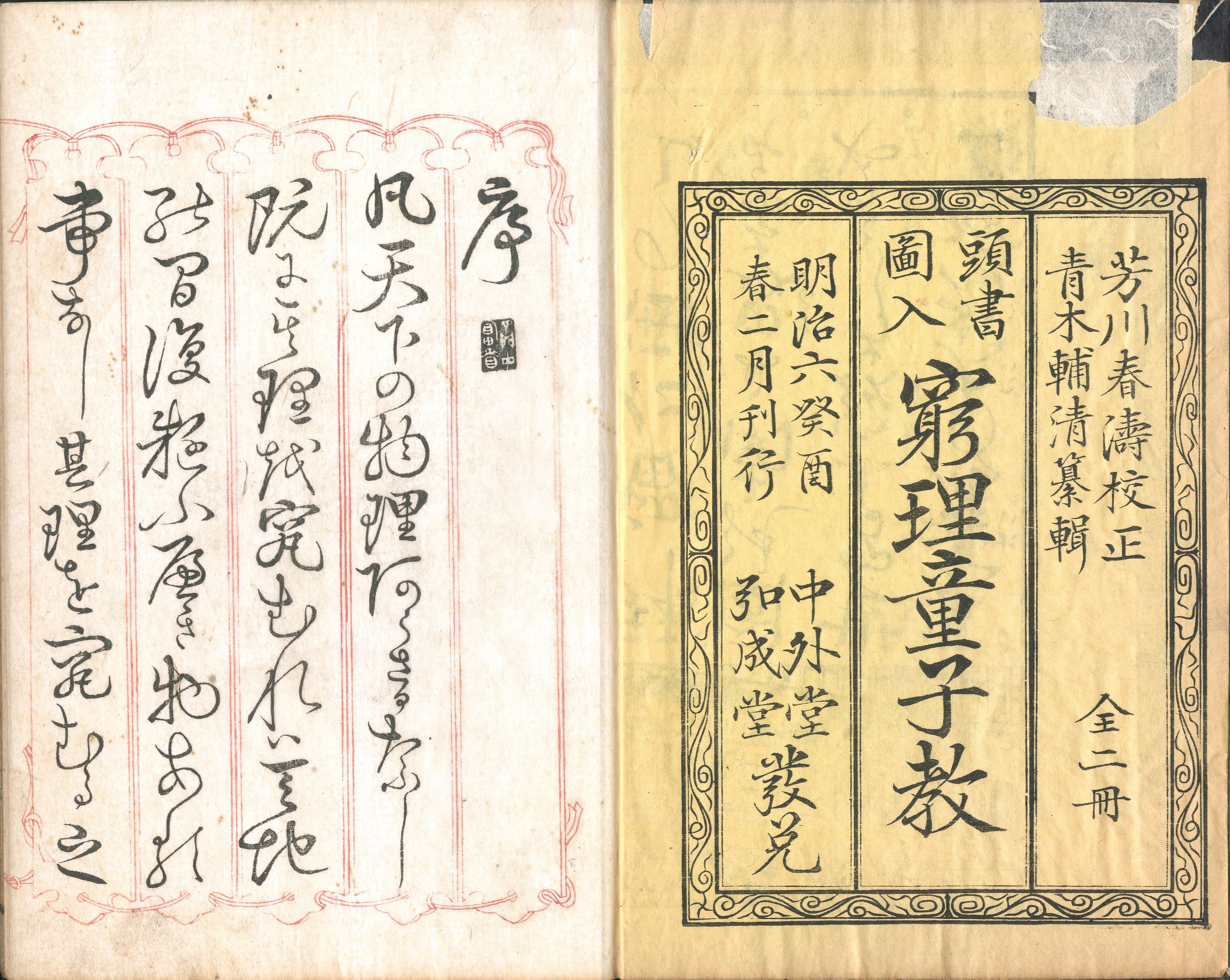〈頭書図入〉窮理童子教(2種) 【作者】青木東江(清輔)作・序。芳川俊雄(春濤)校・序
