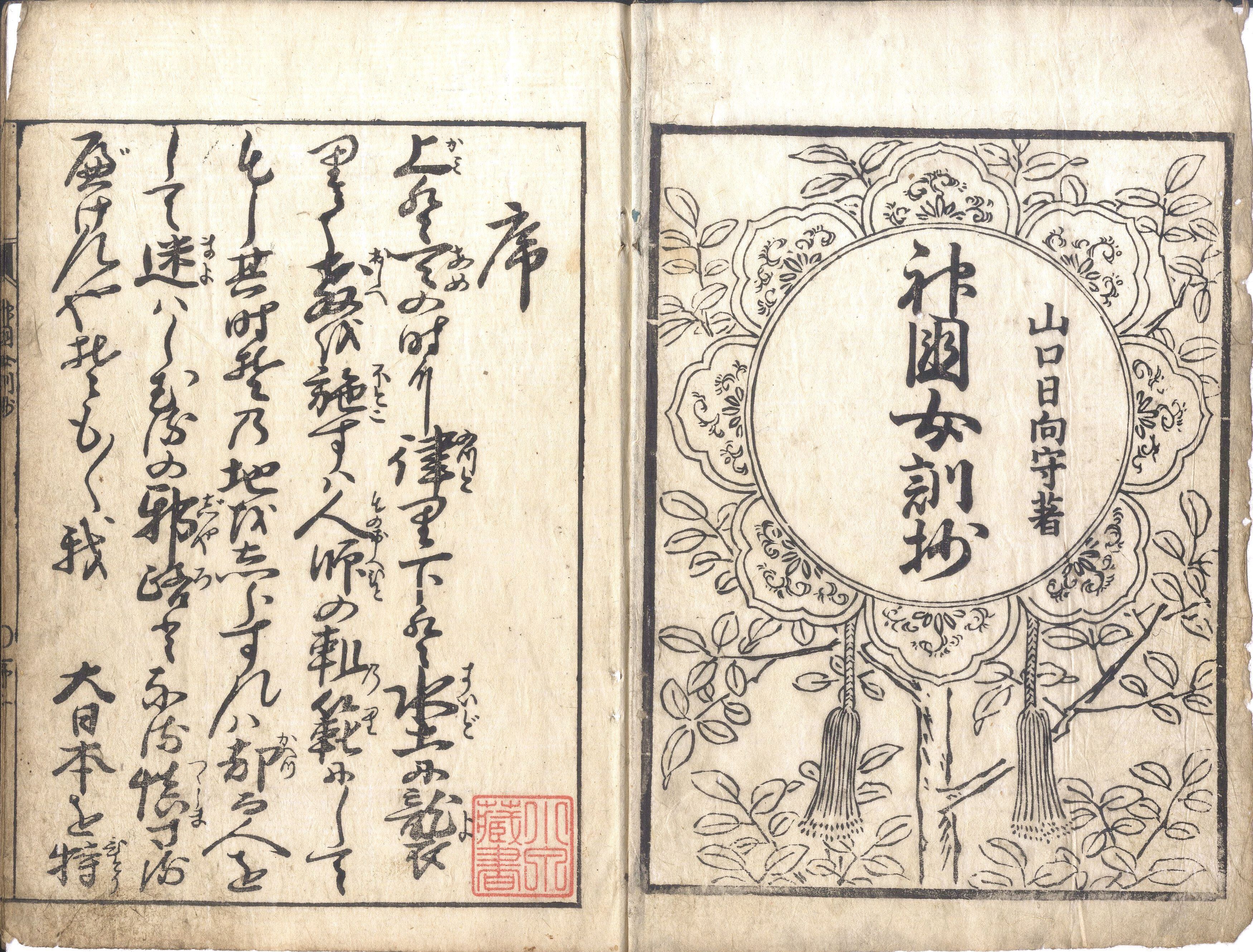 【備考】分類「往来物・教訓」。刊本と写本の2種を全冊収録。『国書総目録』によれば、刊本は明和2年序・初刊、安永3年・安永7年再刊。仏説を排除し、神道思想に即して説いた、近世中期の絵入り女訓書。作者は摂州東成郡上宮の神主。神国日本の濫觴や本朝が「女王国」と称される理由、また仏教とは正反対に神道で女性が尊ばれる所以などを説く。男女ともに「淳(すなお)に、正直(まっすぐ)に、親につかへ、君を敬ひ、夫婦・兄弟むつましく…」といった理想を神話に基づいて諭すのが特徴で、仏説の非なることを縷々述べる。