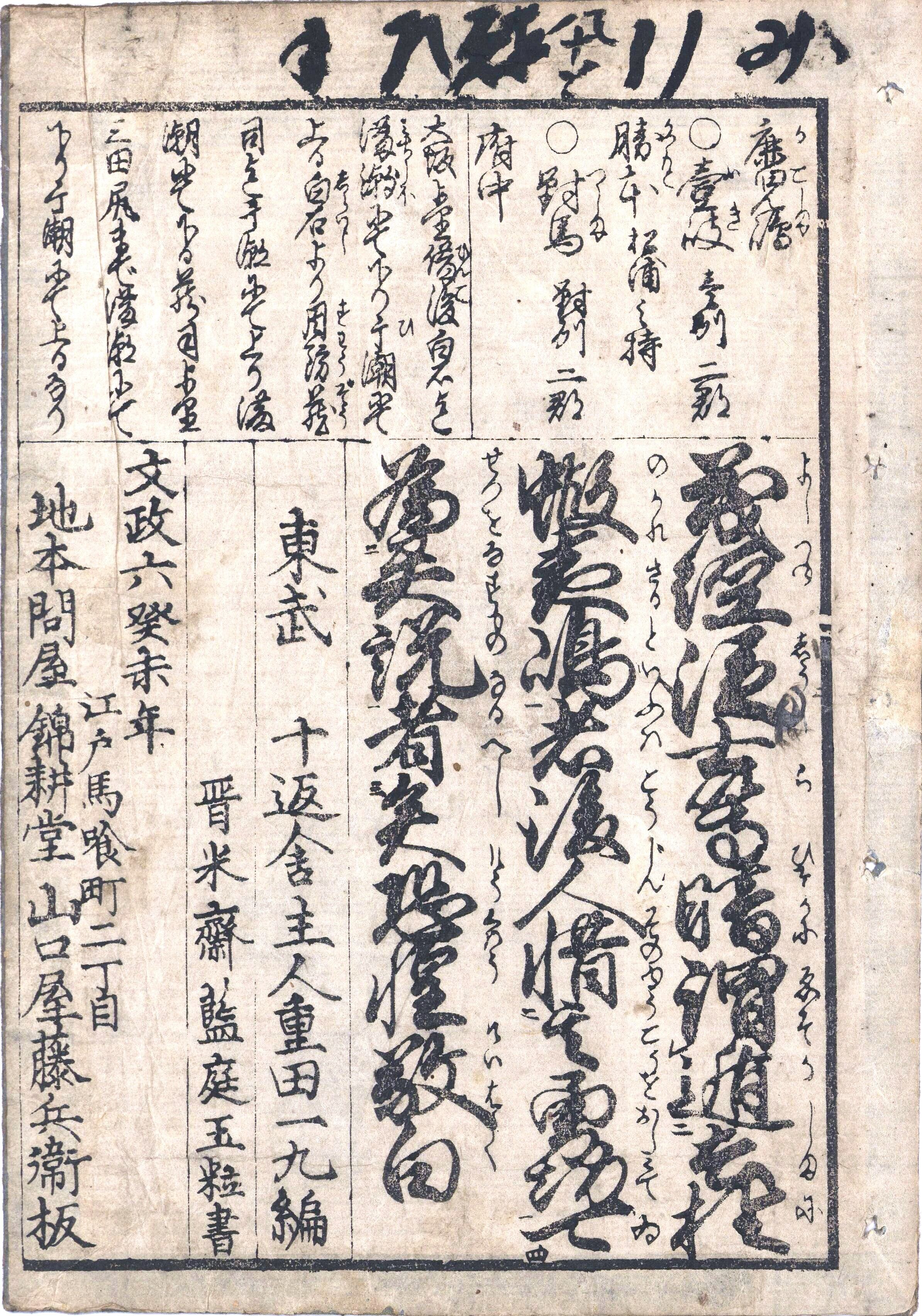 【年代等】文政6年刊記。文政7年刊。[江戸]山口屋藤兵衛(錦耕堂)板。