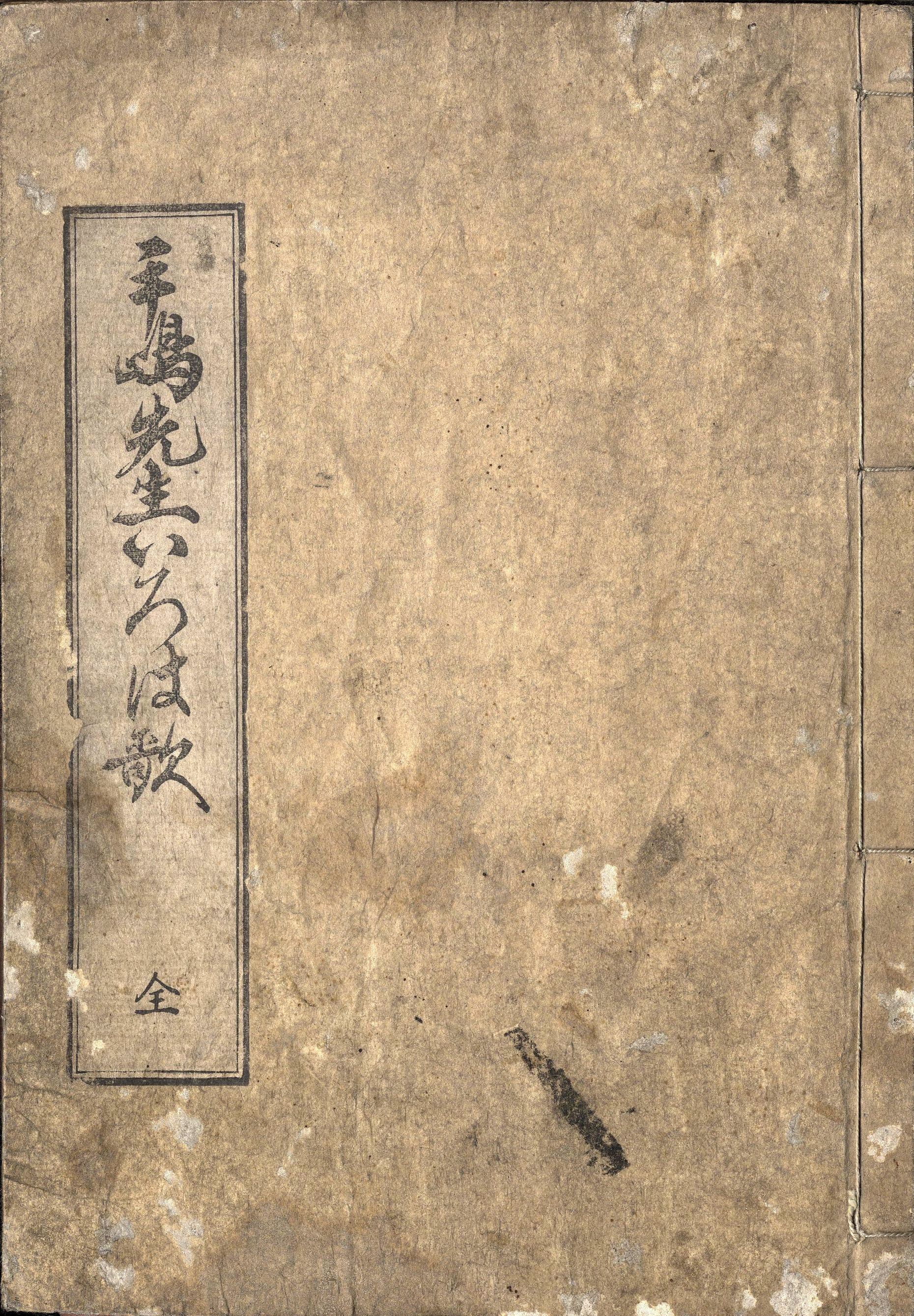 【備考】分類「心学」。 別本(信成舎板)も全冊収録した。手島堵庵が安永2年7月に著した「いろはうた」(『〈児女教訓〉ねむりざまし』所収)に挿絵を施した道歌集。半丁に2首ずつ短冊形の界線を設け、イロハがるたのように挿絵とともに掲げる。もともと1首ずつ裁断した一枚刷りの施印兼用で、心学講舎毎に独自で上梓し、各首界線下部に一つ一つ心学講舎名を刷り込んだものが多い。「(い)いぢがわるうは生れはつかぬ 直(すぐ)が元来(もとより)うまれつき」「(ろ)ろくなこゝろを思案でまげる まげねば(ニヤ)まがらぬわがこゝろ」から、「(す)すまば住(すみ)よし赤子の心 これぞめでたききしの松」「(京)京の大平楽々の身で 外(ほか)の願(ねがい)はみな栄耀(えよう)」までの48首を掲げる。