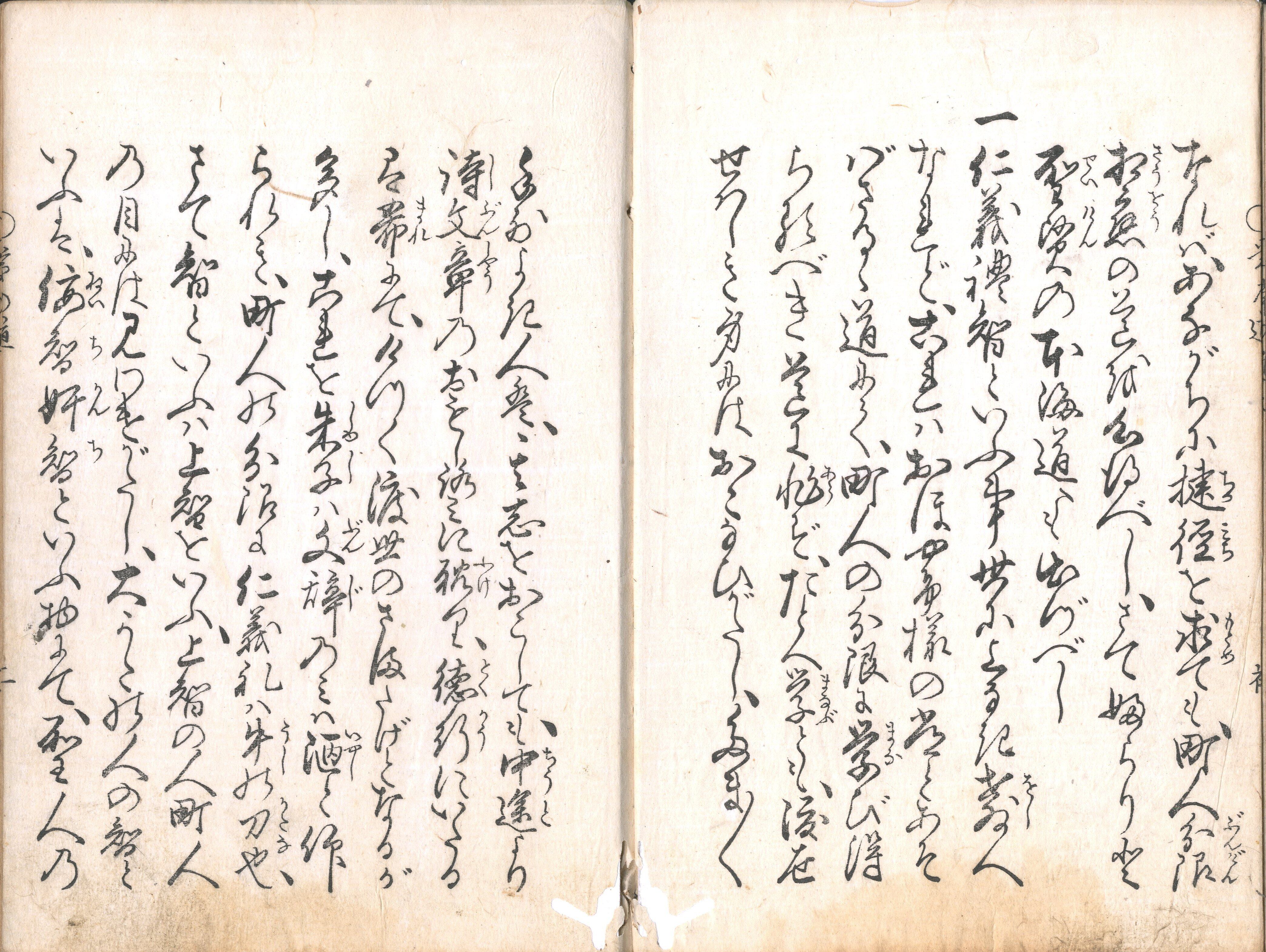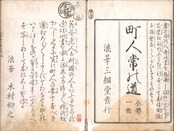 【備考】分類「心学」。同板別本も抄録した。『町人常の道』は、表紙見返に「信の一字を守り家業を勤め行う時は祈らずして寿福円満・子孫繁昌疑いなきものなり」とあるように、庶民倫理における「信」の重要性を説いた教訓書。まず、町人は聖賢の教えの深い道理を知らずとも、町人相応の道 「信」を心得よと述べる。「信」とは「何事も契約を違えず、始めから其の終わりまでをよく慎む」ことで、「信」の中にこそ町人相応の礼も含まれ、信を守れば自ずと「孝悌忠信」も「忠孝」も備わると諭す。続いて、親孝行、子育て、兄弟・夫婦、三不去・七去、友との交際、吝嗇と倹約、信仰、読書、分限、学問、奉公人の使い方、家業出精などについて説く。なお、『大阪出版書目』107頁に「町人常の道 一冊/校合者 木村嘉助(南久宝寺町五丁目)/板元 柏原屋嘉助(博労町)/出願 安永八年二月/許可 安永八年三月二十五日」とある。また、本書の改題本が、寛政8年刊『諸人常の道』で、首題に「大福長者訓(おしえ)」と傍書するなど一部改刻されている。