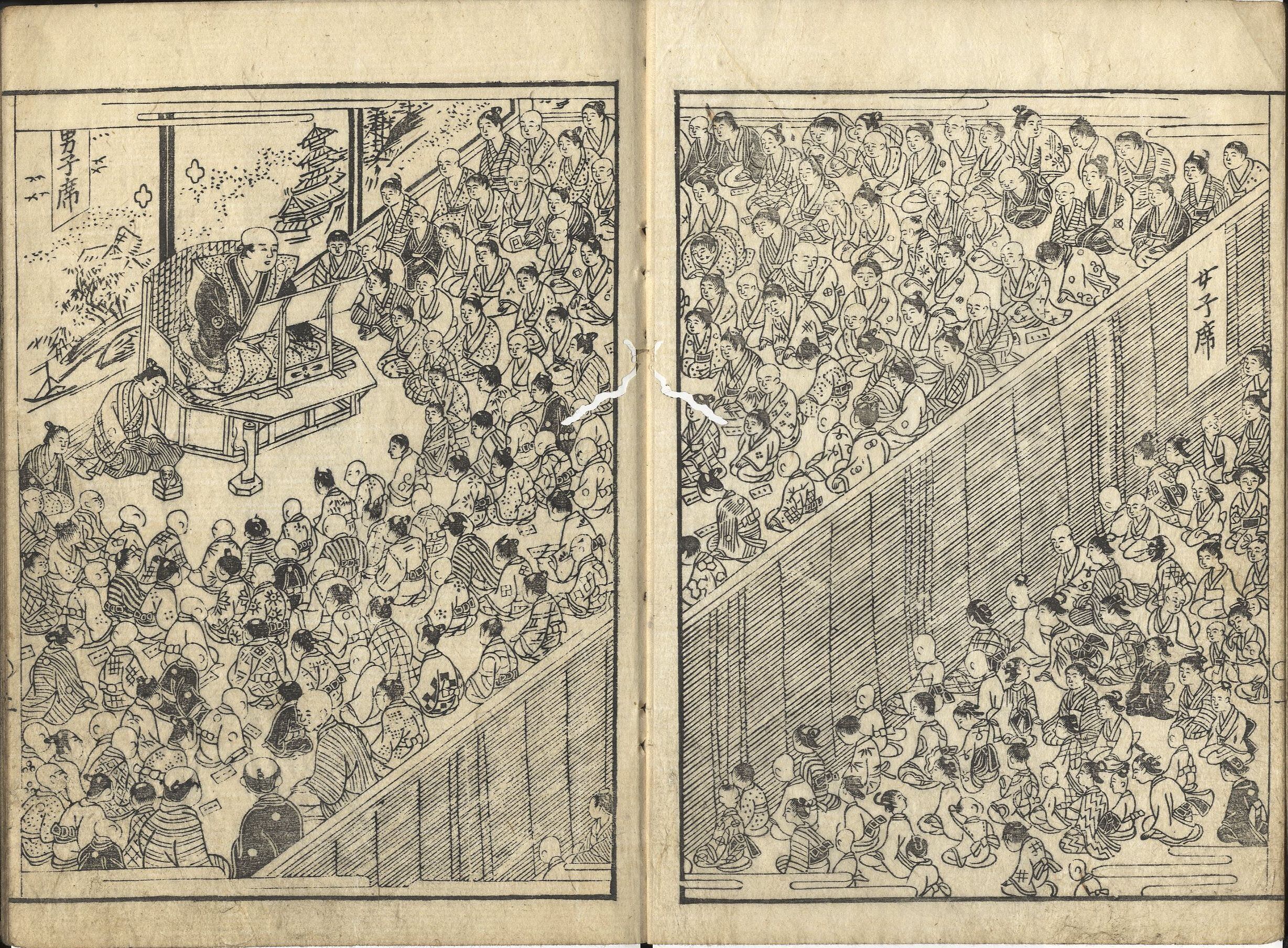 【備考】分類「心学」。安永2年2月から月3回(3・13・23日の八ッ半時)、7~15歳の男児と7~12歳の女児を集めて、親孝行など「御幼稚様方御行作よろしく御成り候為の御教え」を説いた手島堵庵の講話の際に配布された各回の講話要旨を一冊にした書。本書は初板本。ほかに(1)安永2年板異板、(2)安永2年板(2冊本の下巻)、(3)寛政4年再刊本、(4)天保14年刊「〈幼〉前訓」(中本)の一部を収録。