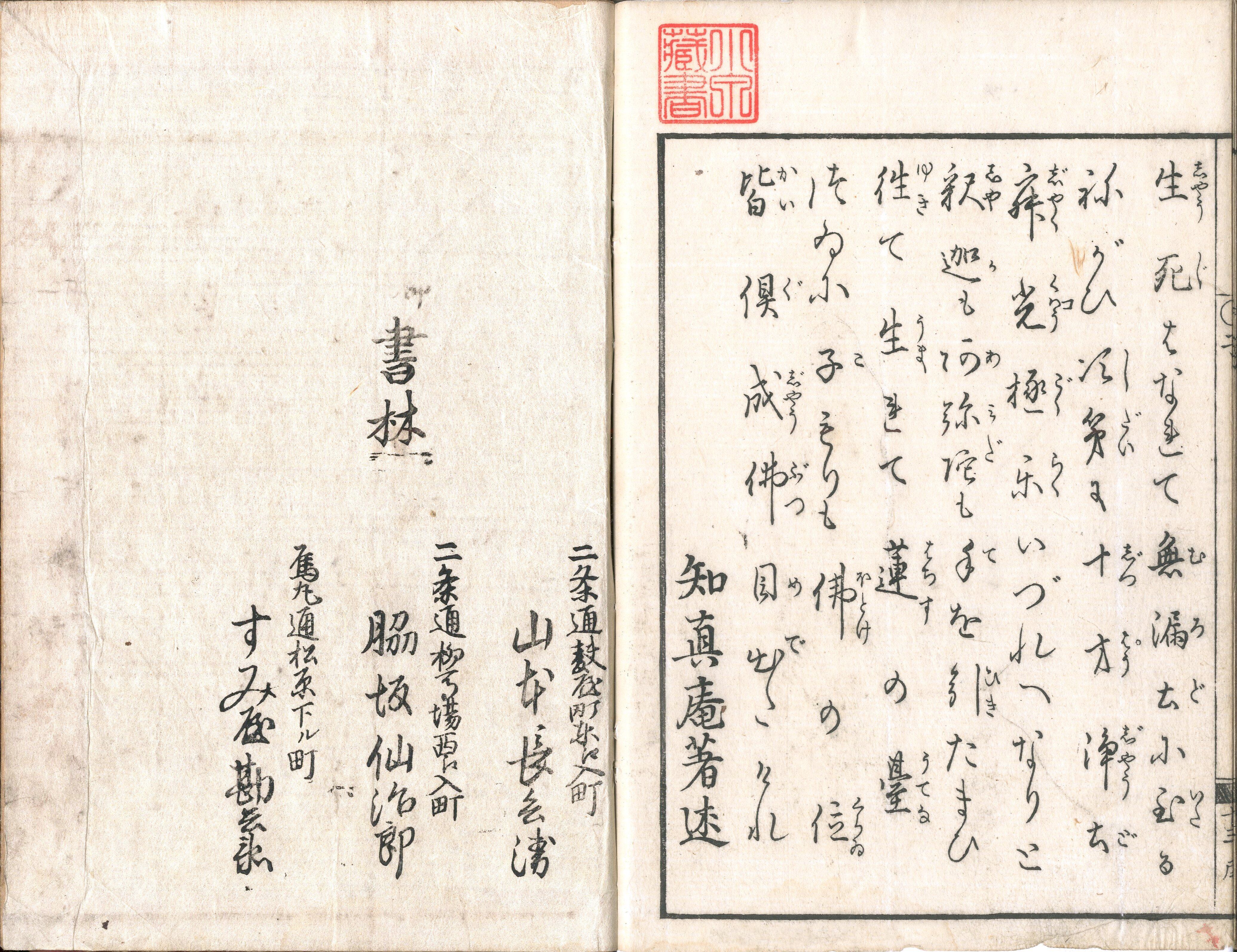 【年代等】江戸中期刊。[京都]炭屋勘兵衛ほか板。