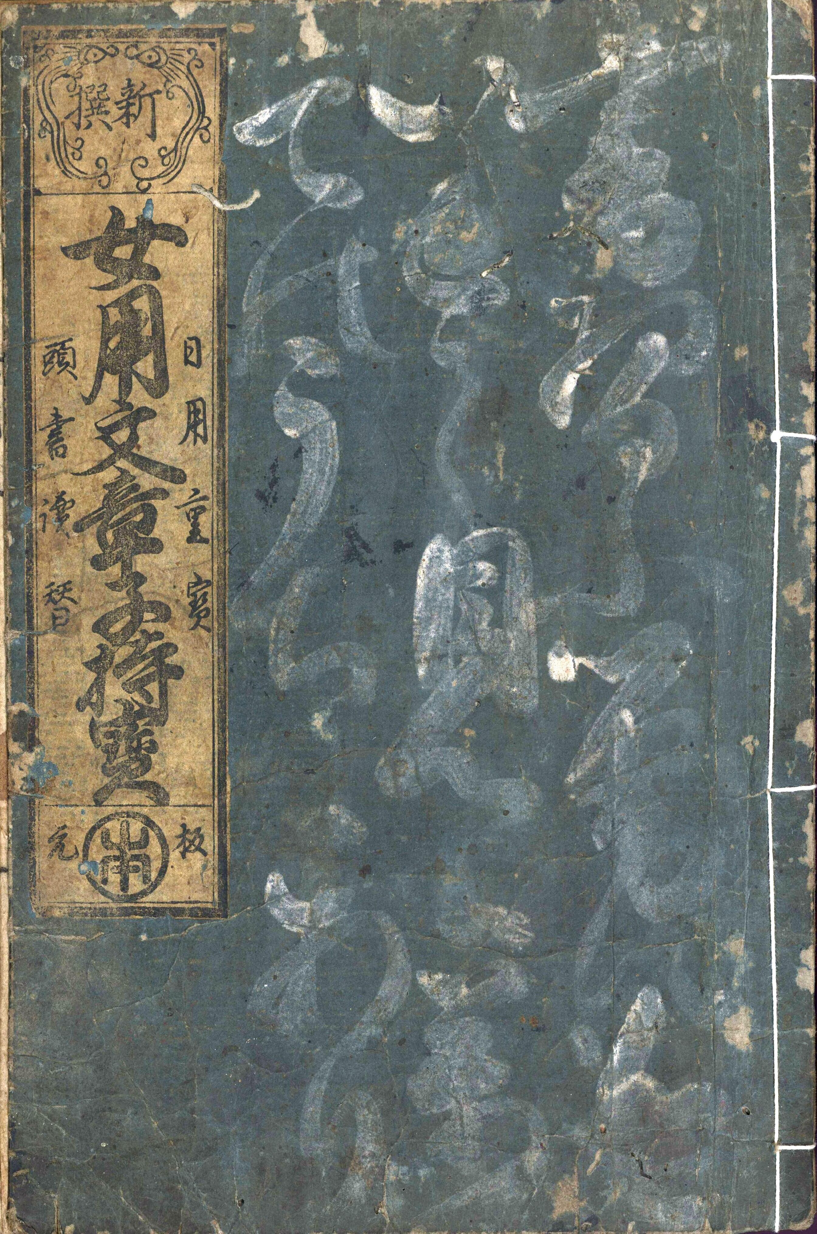 【備考】分類「往来物」。袋綴じ展開収録。『〈新撰〉女用文章子持宝』は、「年始乃文」から「平産の文・同じくへんじ」までの24通を収録した女用文章。五節句・四季に伴う例文が大半で、末尾に婚礼・出産に関する例文を収める。本文を大字・5行・付訓の並べ書きで記す(末尾2通のみ散らし書き)。頭書には本文の一部の略注や「文書様の事」「源氏目録」「もく録の事」「折紙もく録の事」「色紙書様の事」「短冊書様の事」「懐妊慎の事」「七夕歌尽し」「小笠原流折方」「十二月の異名」を載せる。