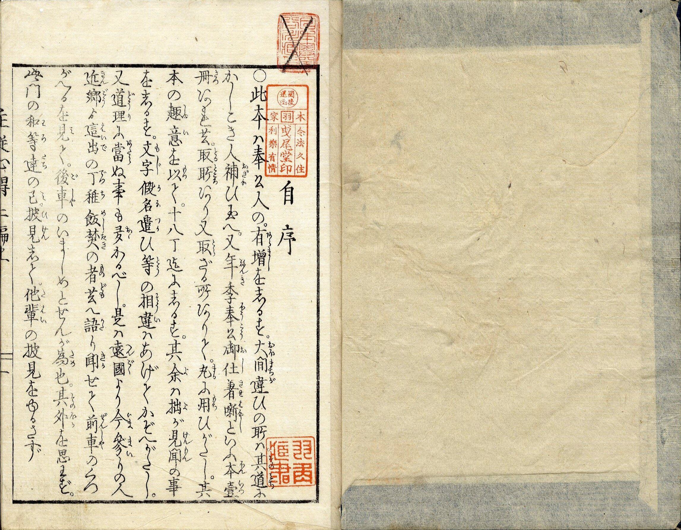 【年代等】天保13年4月自序。天保14年7月作・刊。[江戸]和泉屋仁三郎ほか板。