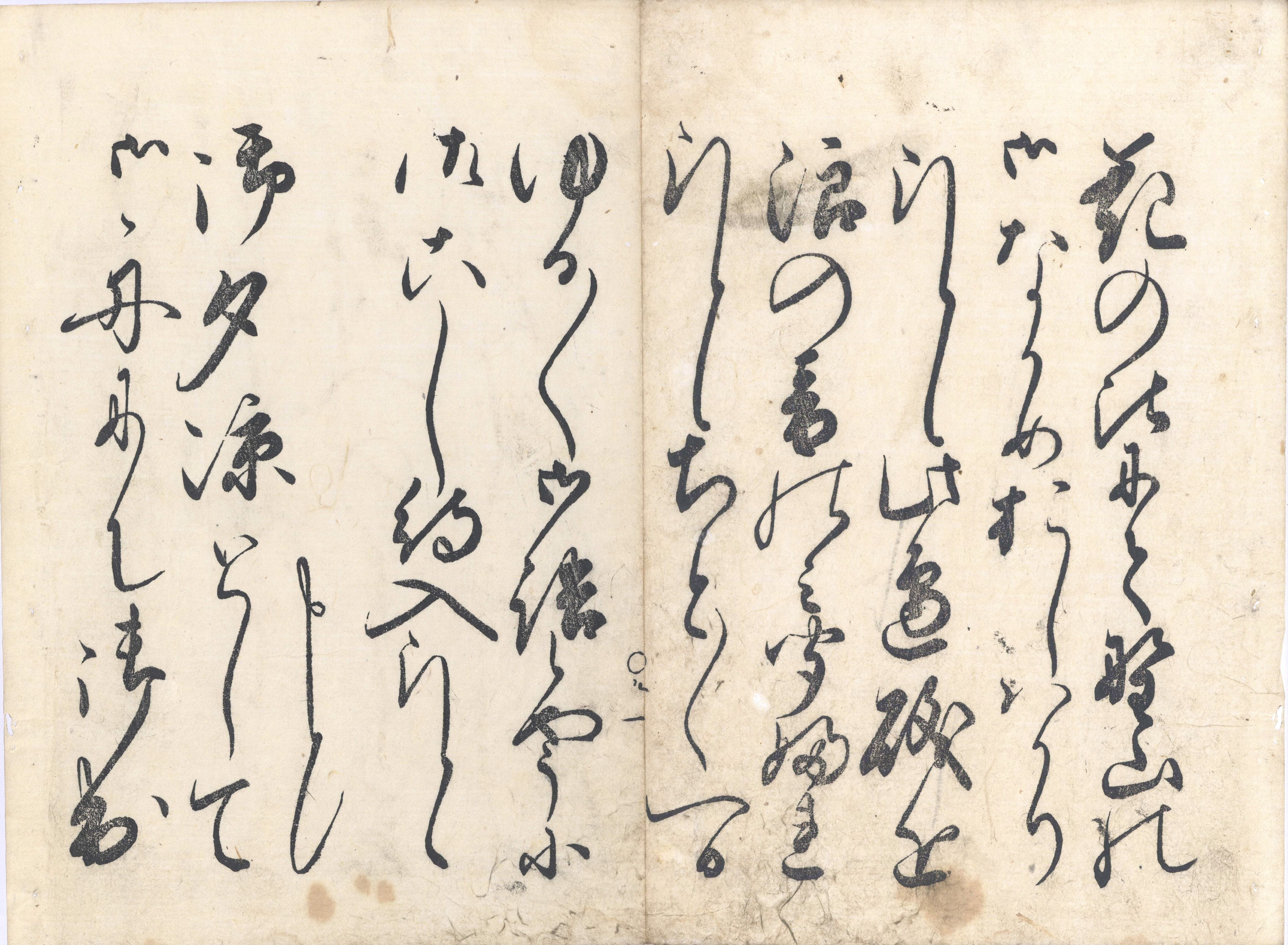 【備考】分類「往来物」。袋綴じ展開収録。『寺沢かな文章』は、並べ書きの仮名文の手本。前半は大字・4-5行・無訓で認めた手紙で、花の季節に訪問を請う文、船上での夕涼みの誘いに応える文、土用前の暑中見舞い状、寒中の逗留についての文、姫君輿入れ祝儀状、昨日の訪問に対する礼状の6通、後半部は半丁2行の折手本の版面の体裁で綴った各8行(1丁)の例文で、新年祝儀状とその返状、梅の季節の挨拶状、輿入れ・平産・菊重ねの祝儀状の6通で、合計12通を収録する。