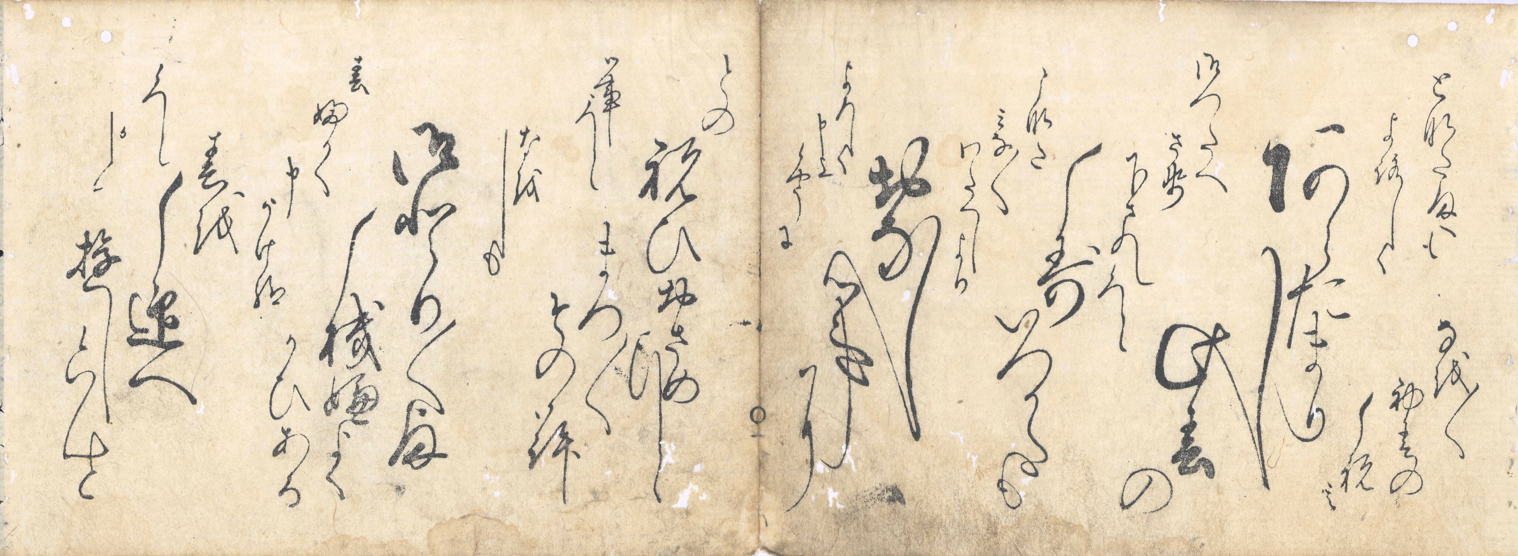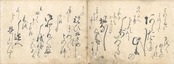 【備考】分類「往来物」。袋綴じ展開収録。『〈かな文章〉手引のまつ』は、「あらたまりし此春の御寿…」に始まる賀状以下、花見誘引状・桃の節句祝儀状・菖蒲の節句祝儀状を始め、賀茂の禊・七夕・八朔・重陽・歳暮等に伴う四季用文、また、婚礼・髪置など女性に関わる祝儀状など25通を収録した手本。初板本見返に目録を付す。全文が大字・無訓の二段散らし書き。半切の大きさからして、ほぼ実際の手紙を原寸大で綴ったものであろう。また、奥書に「書林高田氏の懇望に依りて…」とあるように堺屋清兵衛が初印である。