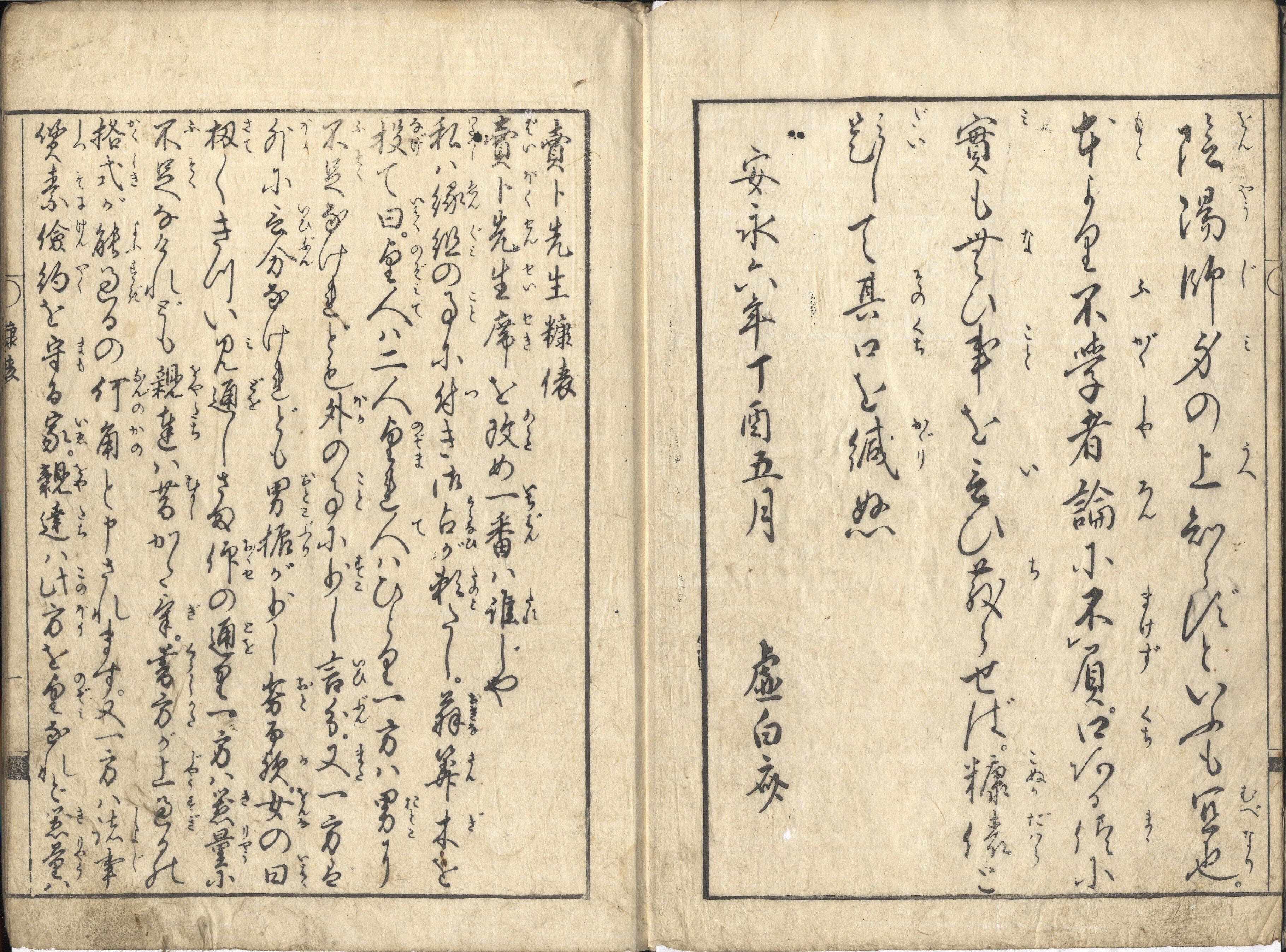 【年代等】前編:安永6年5月自序、同年6月刊。[京都]炭屋勘兵衛ほか板。