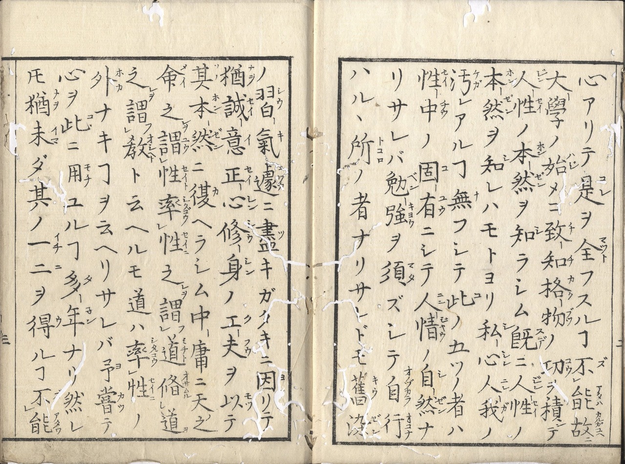 【判型】半紙本1冊。縦224粍。【作者】大口知常(トモツネ、湖山)作・序。鎌田俊迪(トシミチ)序。東時記(トキノリ)跋。【年代等】文化14年冬作・跋。文政元年11月序。同年冬自序・刊。[湖東幡山]汎愛舎蔵板。[京都]吉田新兵衛売出。【備考】分類「心学」。鎌田氏序文に、本書が大口湖山が子弟に授けた「家則数十条」であることを示すが、それに続く「湖山心得書趣意」によれば、湖山自身が「道は性に率ふの外なきこと」を長年探求し続けてきたが十分に悟ることができないと述べ、ましてや門人には困難なことから、「身を保ち家を安んずる」ための実践行として以下の条目を授けたことに言及する。本文は全13カ条と後文からなり、まず第1条の「一、御公儀様より被仰出候(おおせいだされそうろう)御法度之義は少分の事たりとも、急度(きっと)相守(あいまもり)、聊(いささか)も背かざるやうに、常に相心得申べき事」で公儀・法令遵守から始まり、第2条で神明を尊び儒仏の教え基づき直道(じきどう)(素直なる道)を守ること、第3条で親孝行、第4条で子供を善人に育てる親の義務、第5条で主人に陰日向なく仕える奉公人の義務、第6条で奉公人を憐れみ、教育指導すべき主人の義務、第7条で夫を大切にし舅姑への孝養を尽くす妻の義務、第8条で妻を憐れみ妻と和合し、不義によって妻の嫉妬を招かぬ夫の義務、第9条で兄を親の如く敬い、相和らぎ親しむ弟の義務、第10条で弟を憐れみ、わが子よりも一入大切に育てるべき兄の義務、第11条で善悪の友を選ぶなど朋友の交わりの心得、第12条で親類との和睦や出入りの者への憐愍(れんびん)や家業出精等、第13条で町内の役人・老人・善人等への礼儀についての条々を掲げる。続く後文で、以上の事柄を良く守る者こそ人の名に値する「御国重宝の人」であるとし、御法度を軽んずる人や親不孝の子供、子供を溺愛して正しく教育しない親など以上の条々に反する悪人の例を列挙する。さらに「附言」として、他人に対する礼譲や人々の偏性(性癖)について述べ、本書を毎朝一度ずつ読んで礼譲を守れば幸福に恵まれ修身斉家や子孫長久の基になるだろうと諭す。
