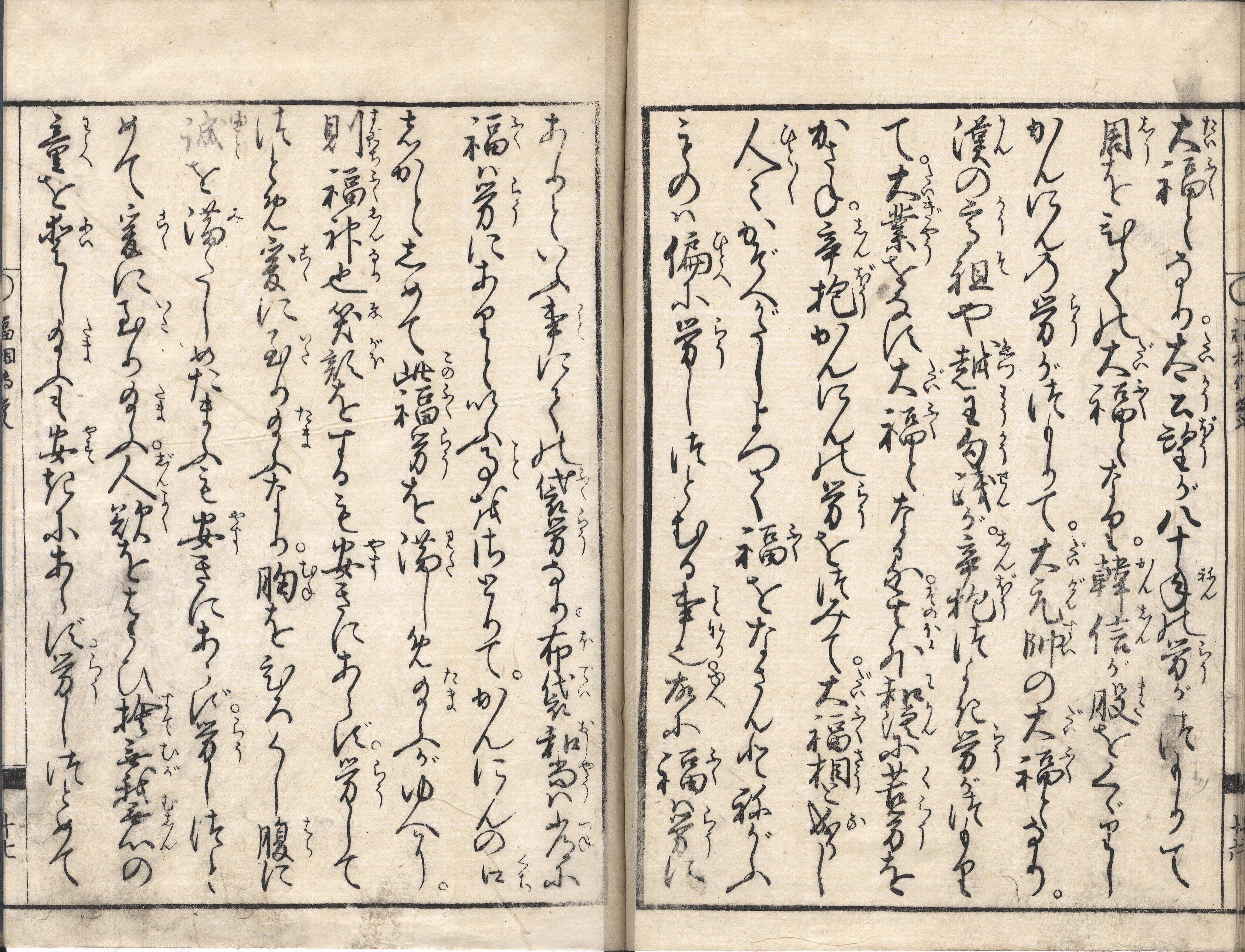 【備考】分類「心学」。従来知られていなかった、山城屋板の「異本あつめ草」で、篇数を明記しないのが特色。1巻「福相になるの伝授」、2巻「和合長久の伝授」、3巻「富久貴足神之伝授、4・5巻「かがし草」、6・7巻「立身始末鑑」、8・9巻「五用心慎草」、10巻「教訓春日和」を収録。