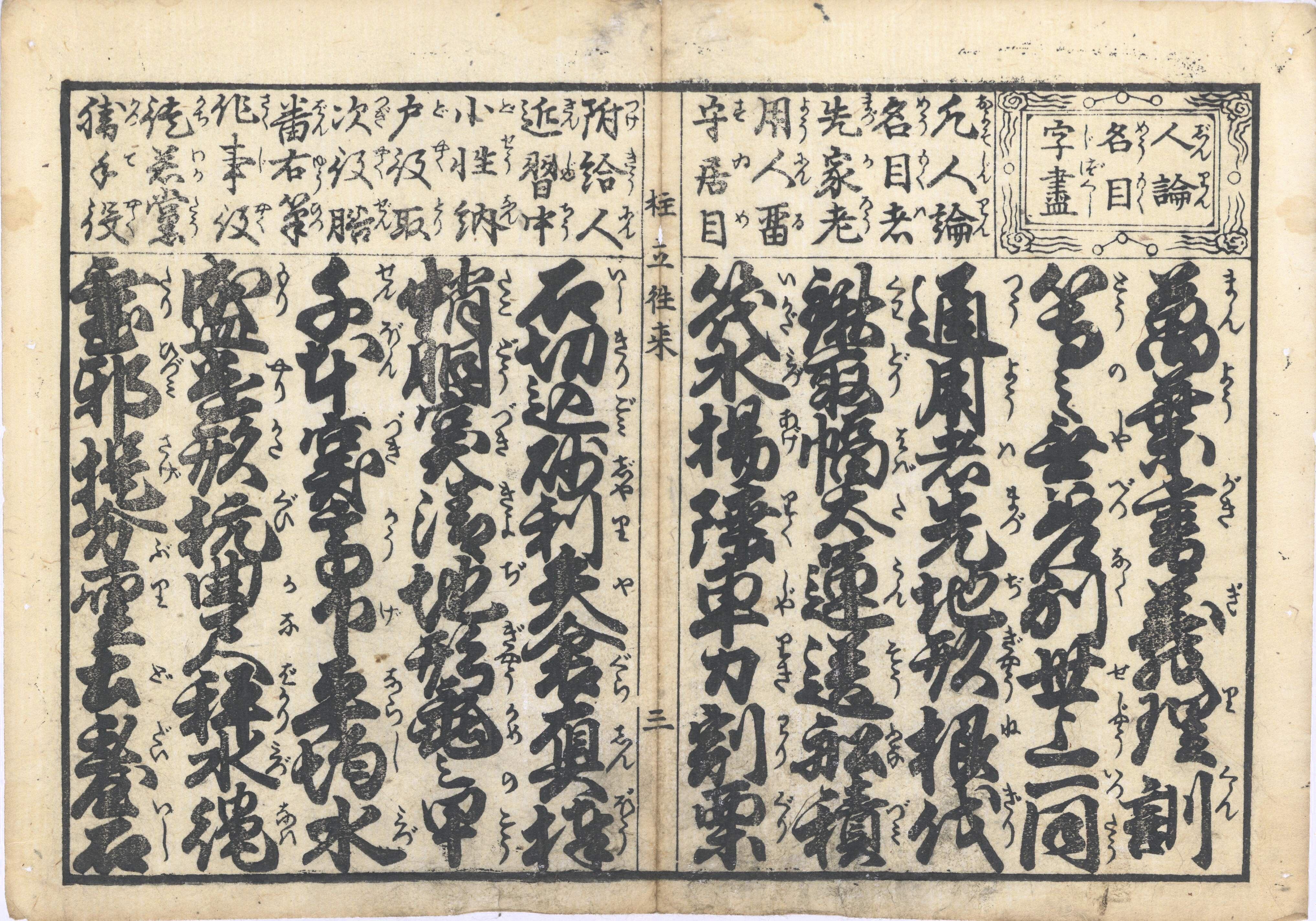 【備考】分類「往来物」。文化13年初板本1種と文政頃再刊本3種を収録。うち2点を袋綴じ展開収録(見開き図再掲)で全冊を収録したほか、文政板の2点も抄録した。『新鐫〉柱建往来[〈文政新刻〉柱立往来・神社仏閣柱建往来]』は、享和頃刊『番匠作事文章』等にならい、もっぱら宮大工子弟用に神社仏閣建築に関する語彙や知識を綴った往来。「凡、神社仏閣・堂塔伽藍・坊舎・寺院、新規造営仕形荒増取扱文字、正字・当字・万葉書、義理・訓等之無差別、世上一同通用者…」で始まる文章で、寺社建築に関する手順や工程、必要な材料・素材、建物各部の名称や装飾・工法などを紹介する。さらに末尾で、宮大工としてあらゆる作業に細心の注意を払い、また先代の流儀・定法をよく守るべきことや、上棟式のあらましなどに言及する。