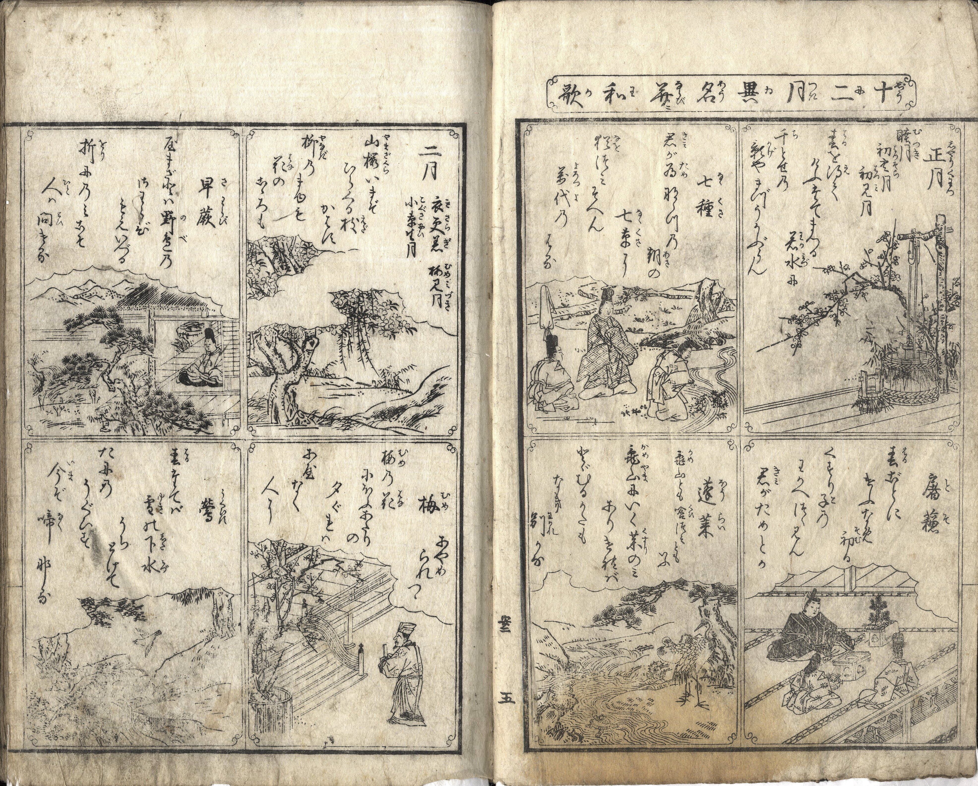 【備考】分類「百人一首」。頭書に歌人系図や和歌注解・挿絵を施す。