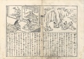 【作者】志田垣与祐(与助)作。長谷川貞寿(筆海子)書。寺井重房(尚房・雪蕉斎)画。伊丹屋茂兵衛(鳴井茂兵衛・成井茂兵衛・白雲館)跋。