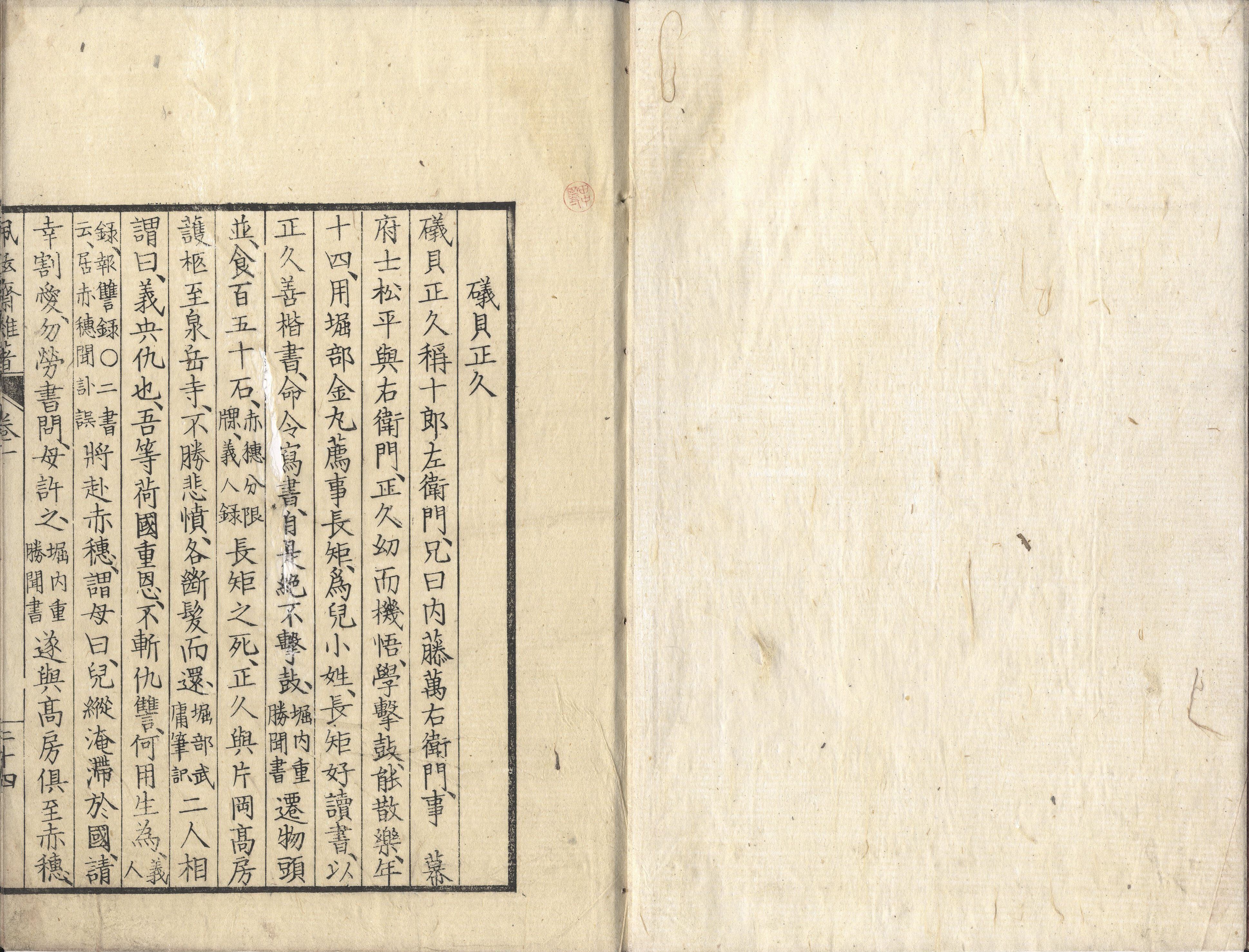 【備考】分類「伝記」。赤穂藩国家老・大石良雄(内蔵助)をはじめとする赤穂浪士(赤穂藩の旧藩士)47名、いわゆる「赤穂四十七士」の伝記。SE01849