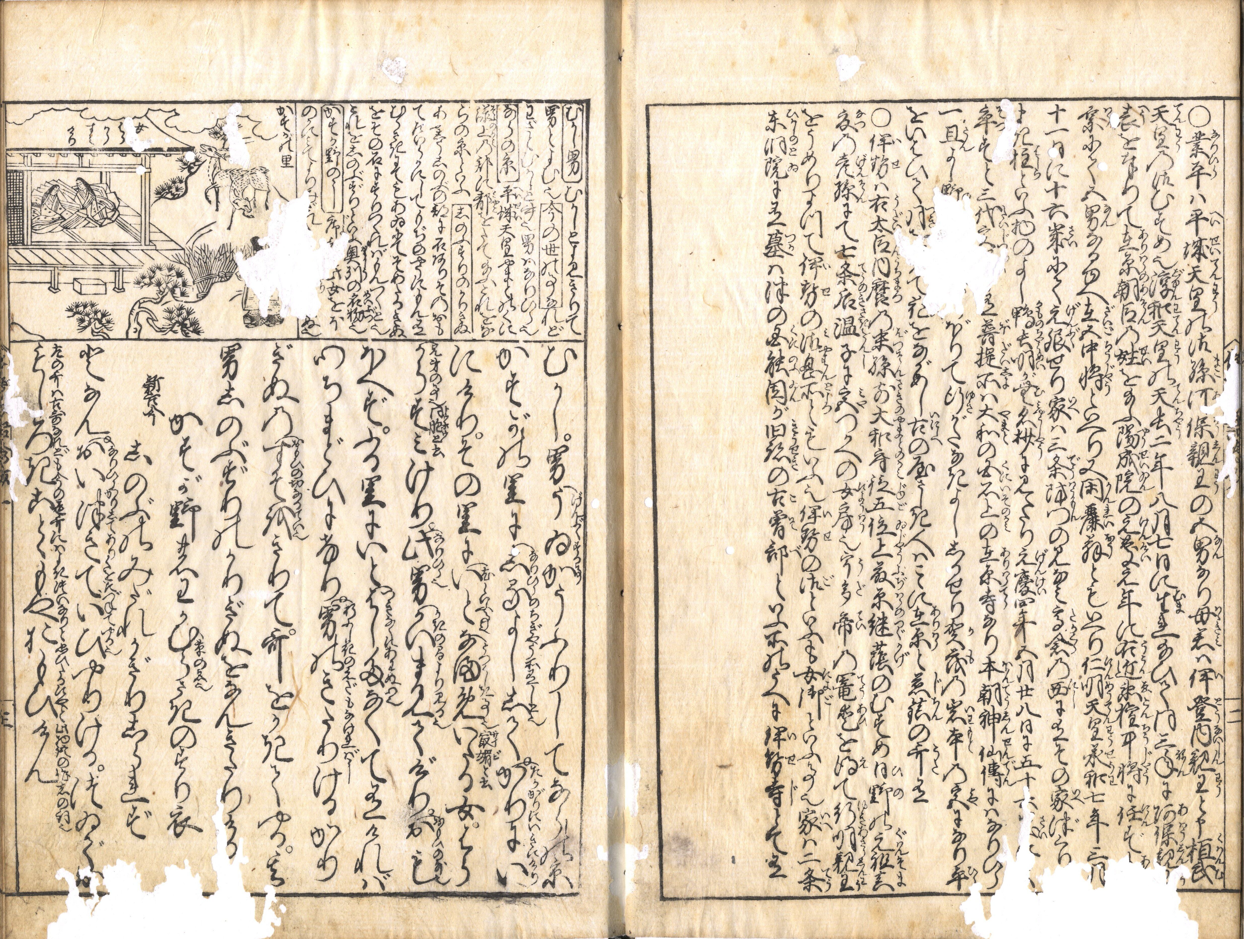 【備考】分類「物語・注釈」。底本は所々に破損がある。『〈新註絵抄〉伊勢物語』は、「伊勢物語」本文の上欄頭書に本文要語の解説や絵解きを施したもの。SE01945