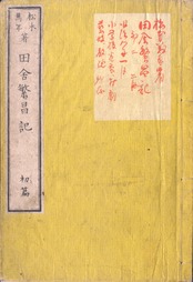 【備考】分類「風俗」。松本万年は大宮郷(現秩父市)出身、寺門静軒の門人で漢学者。 江戸で静軒に学んだ後、秩父で医業を営んだが、静軒の死に伴い妻沼の両宜塾で3年あまり教えていた。 その門下生には女医第一号の荻野吟子がいる。『田舎繁昌記』は静軒の『江戸繁昌記』を模したもので、明治初年ごろの埼玉県地域の社会風俗が描かれている(埼玉県立博物館)。SE01985