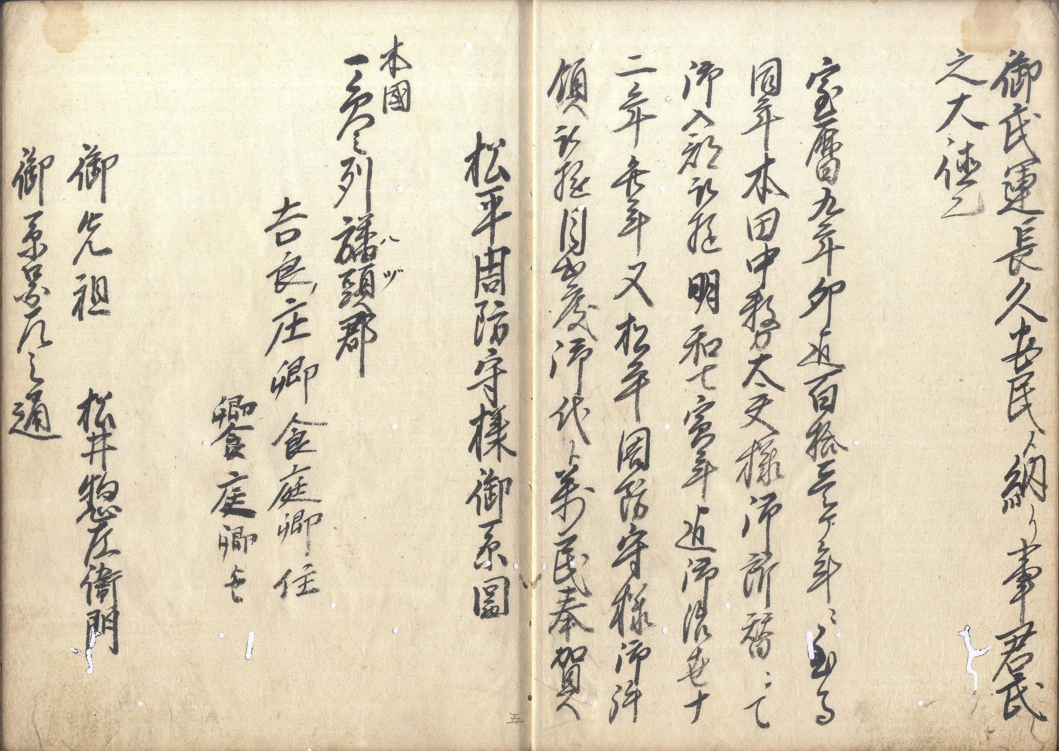 【備考】分類「記録」。石見国那賀郡・美濃郡・邑智(おおち)郡の村数、那賀郡浜田領支配の歴史、松平周防守系図、那賀郡・美濃郡・邑智(おおち)郡各村石高、畑高入覚などを収録する。