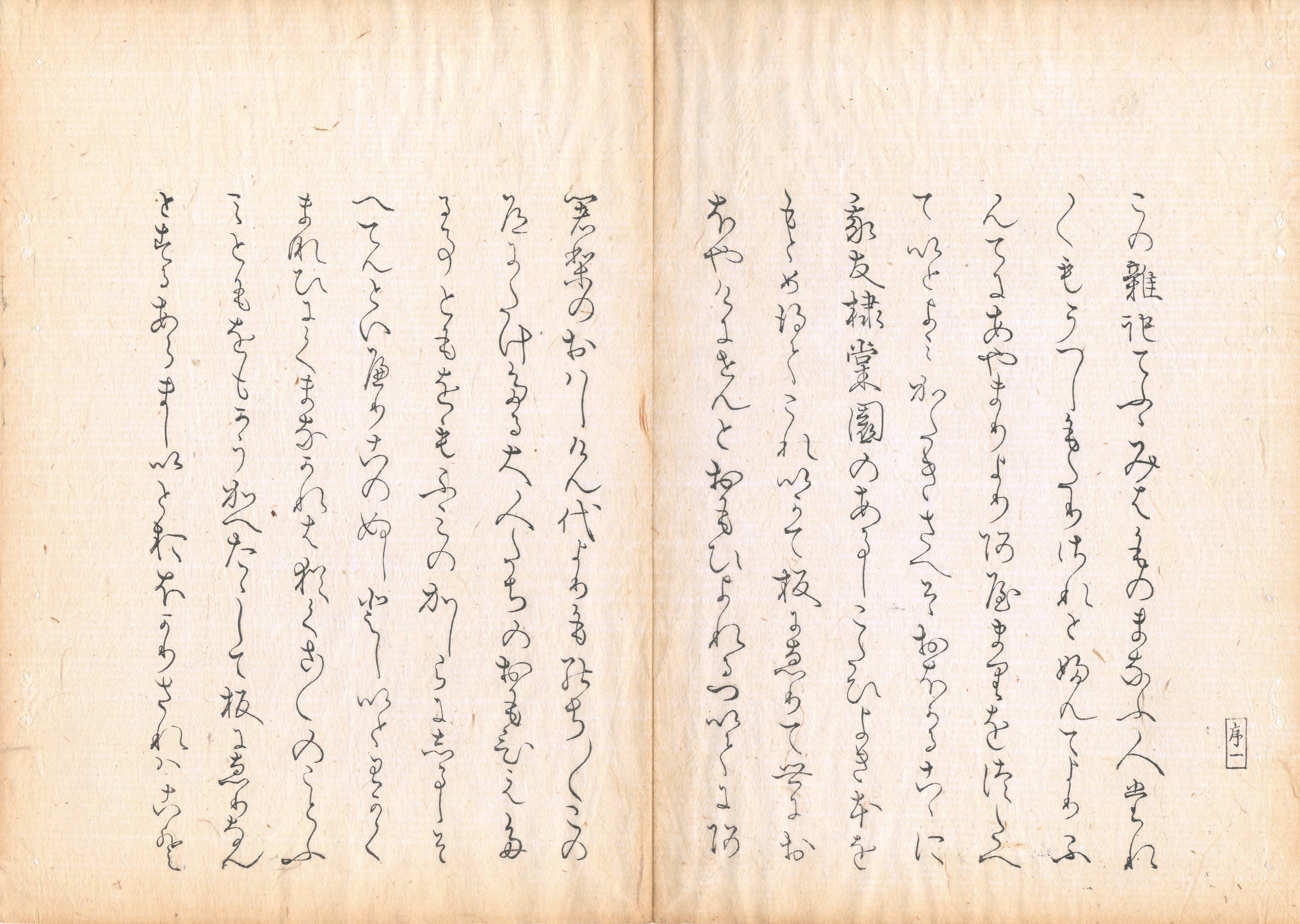 【備考】分類「随筆」。袋綴じ展開収録。別本も抄録した。『円珠庵雑記』は、1冊、随筆、契沖著、単に『雑記』ともいう。『円珠庵雑々記』と合綴されたものも少なくない。自筆本(円珠庵蔵板)は元禄12年成立。文化9年、江戸英平吉ら刊。この版本は、岸本由豆流増注、安田躬弦(ミツル)・岸本由豆流序の1冊本。内容は(1)古語・歌語に関するもの、(2)類語に関するもの(異語同義、同語異義)、(3)語源に関するものなどである。著者晩年の作だけに、平安朝の歌の引用が多い。刊本に付けられた岸本由豆流序に「ただ思ひ出るまにまに書いつけられし…」とあるのが、内容を尽くしている(「日本古典文学大辞典」参照)。/江戸時代の随筆。2巻。契沖著。元禄12年(1699)成立、文化9年(1812)刊。古語の考証や解釈を中心としたもの。円珠庵は契沖の住んでいた庵の名。続編に「円珠庵雑雑記」がある(コトバンク)。