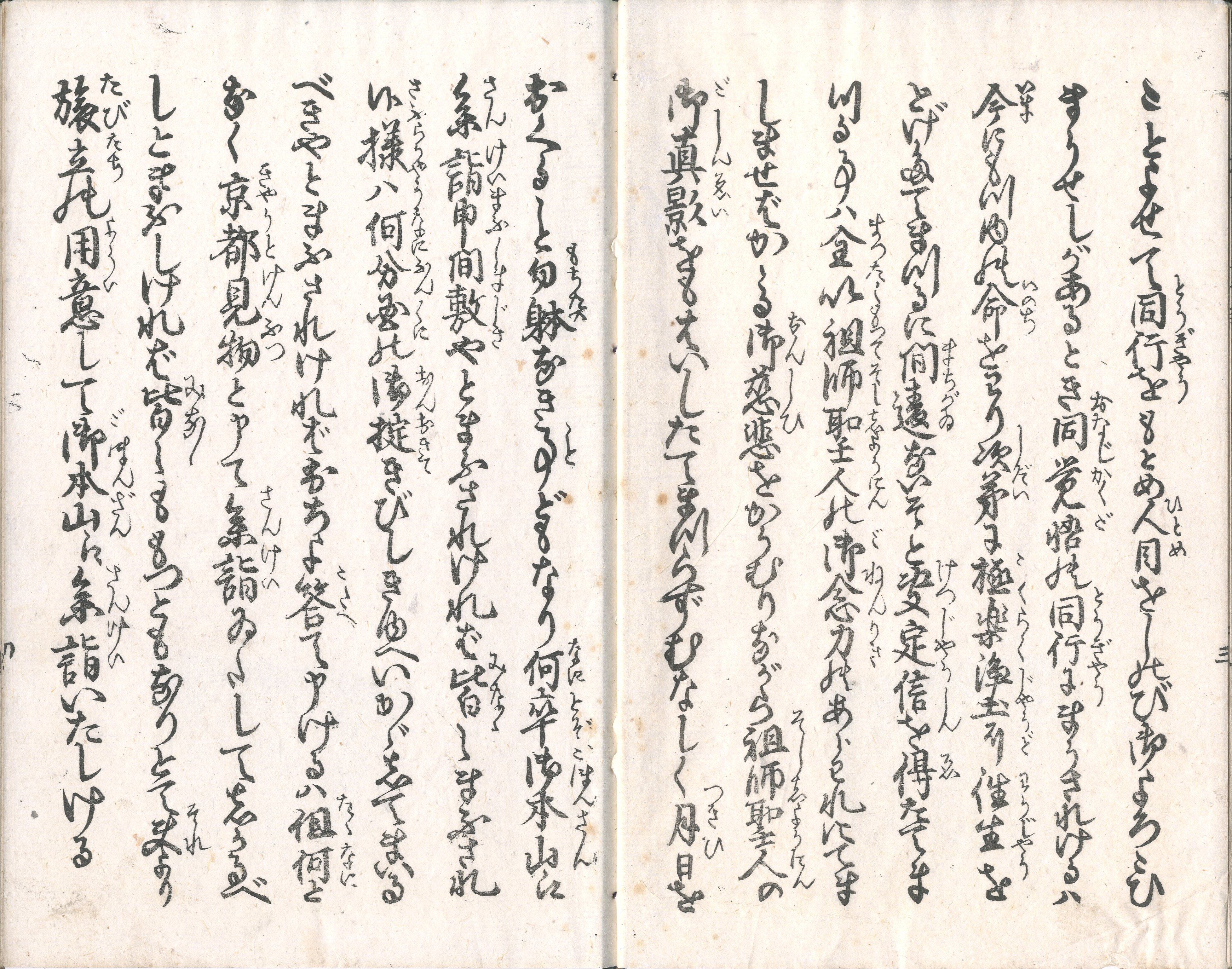 【備考】分類「伝記」。同板2種を全冊収録した。『於千代物語』は、薩摩藩における真宗弾圧関連史料。藩の掟を破って浄土真宗に篤く帰依した薩摩藩士、青木清助の娘お千代が京都参詣したことに対する吟味および処刑の顛末を記したもの。彼女は、寛政5年18歳の時に浄土真宗本山参詣のため、表向きは「花見遊山」と称して同行3人とともに京都旅行を果たし、しばらくは表沙汰にならなかったが、寛政8年7月にその噂を聞きつけた役所から呼び出され、同行した3人とともに厳しい吟味を受け、吟味役人より「心底を改め浄土真宗の信仰を捨てたならば命は助けてやる」と改宗を迫られた。しかし、お千代以下4人は皆、真宗の信仰を捨てることはあり得ないと主張し、いかなる刑罰も受ける覚悟である、改宗は言わば、二人の主人に仕える武士、あるいは二人の夫に仕える妻の如きもので、阿弥陀仏に対して二心を持つことはできないと固く信念を曲げなかった。処刑の直前に、お千代は「七十万石の女人往生の先達であるから」と言って、南無阿弥陀仏の6字を頭に取った辞世の和歌6首を書き残した。処刑直後に西方より紫雲がたなびき、斬首された首が一瞬空中に止まり念仏した後、西方に向かって飛び去ったという。このような経緯を述べて、金剛堅固の信心の大切さを諭し、最後に弘法大師の十無益の詠歌を掲げて締め括る。