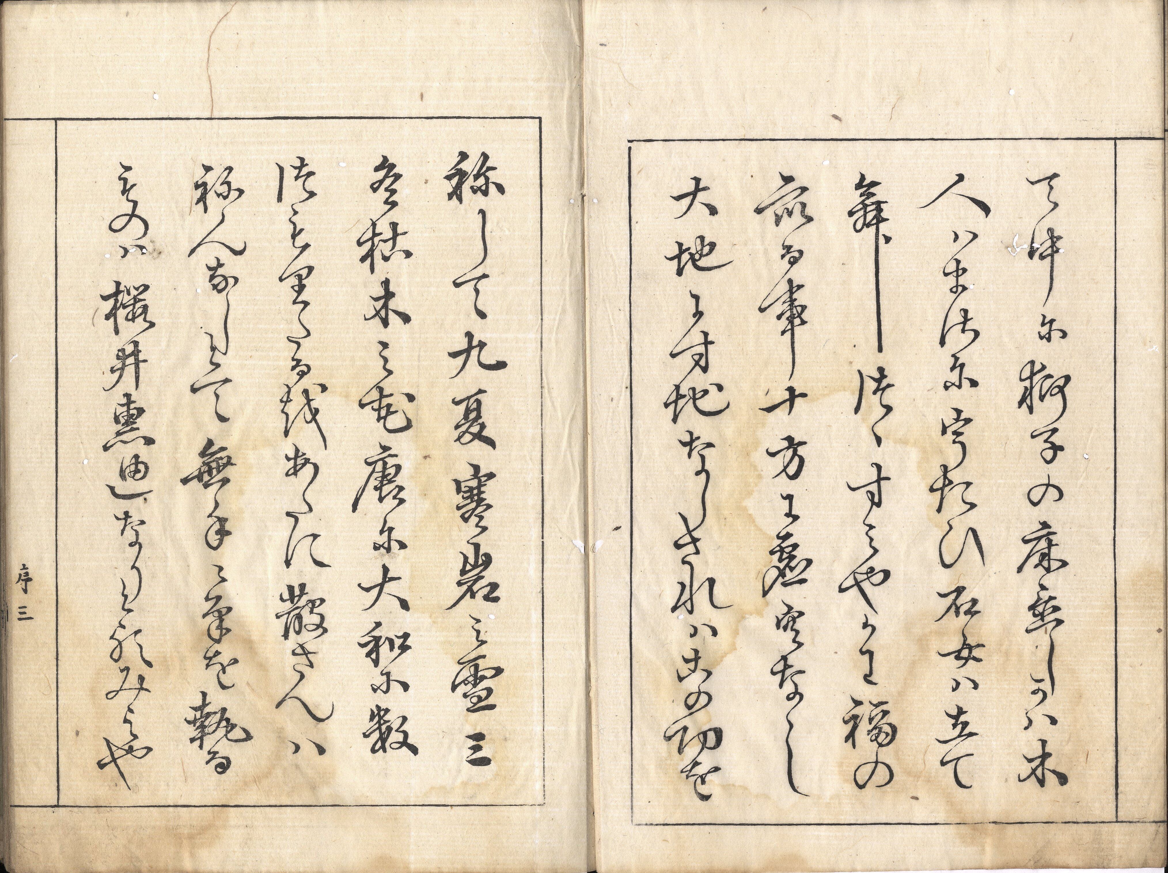 【年代等】天保2年作。同年9月跋。同年11月刊。[京都カ]刊行者不明。また、[大阪]和泉屋儀兵衛ほか板(製本は[京都]菊屋平兵衛)。