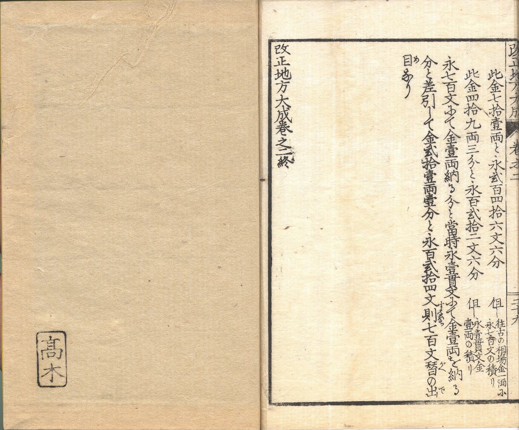 【備考】分類「経済」。大石久敬『地方凡例録』の改編版。SE02269