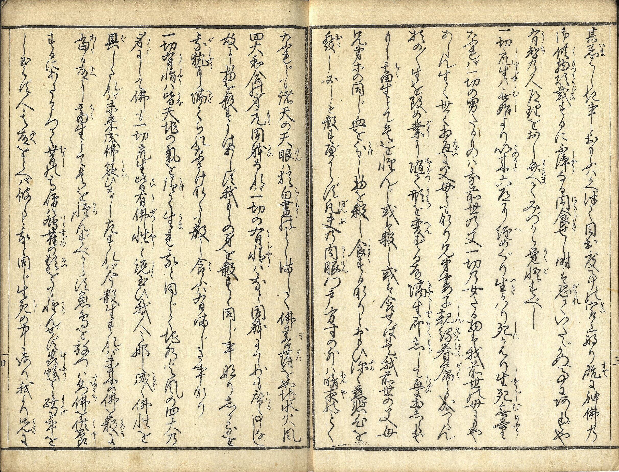 【備考】分類「仏教」。施主跋文によると、六如上人作『放生功徳集』の一部を抜粋して一部増補したものという。SE02274
