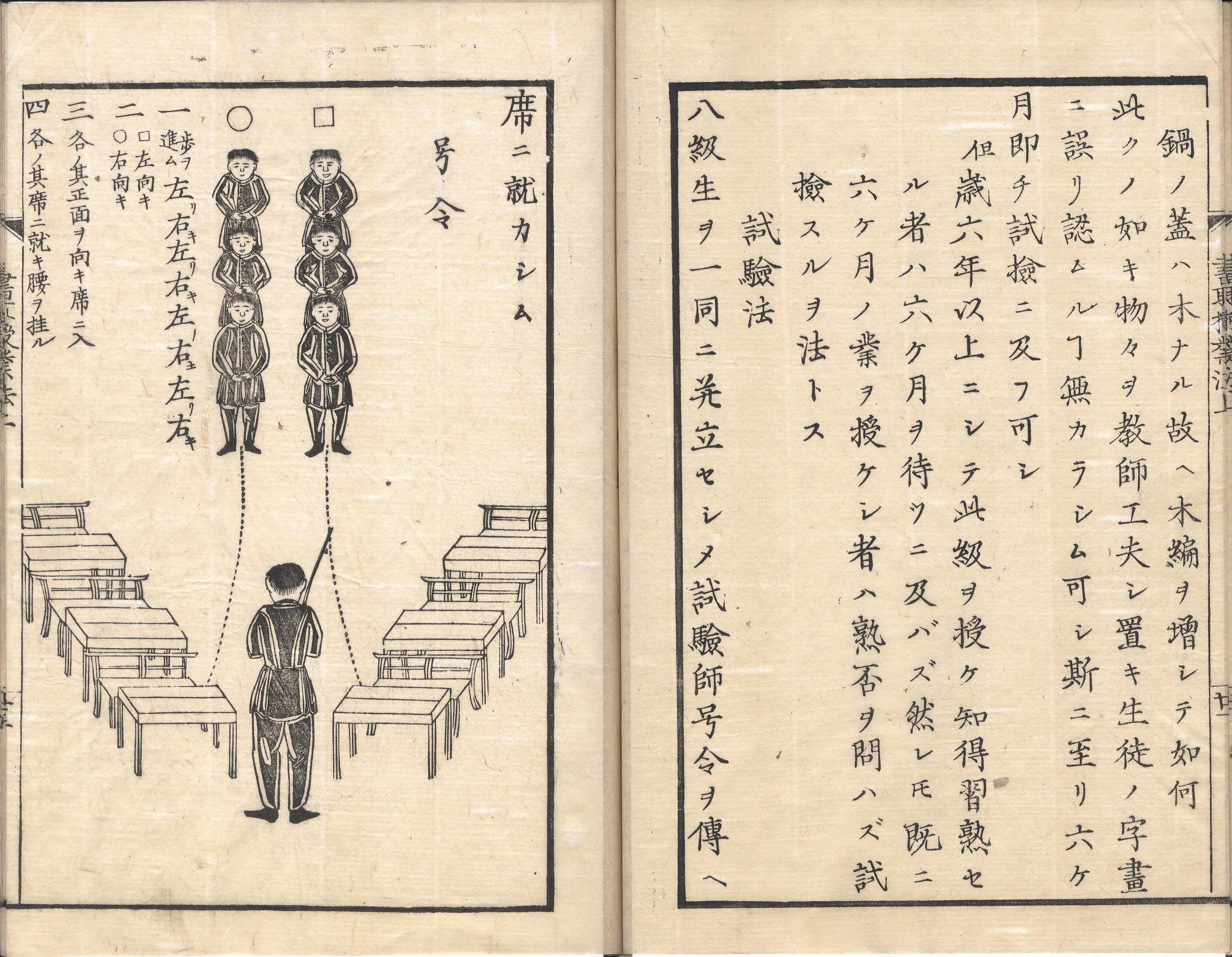 【備考】分類「近代教育」。石盤による書取の指導法を図解入りで示したもの。SE02301