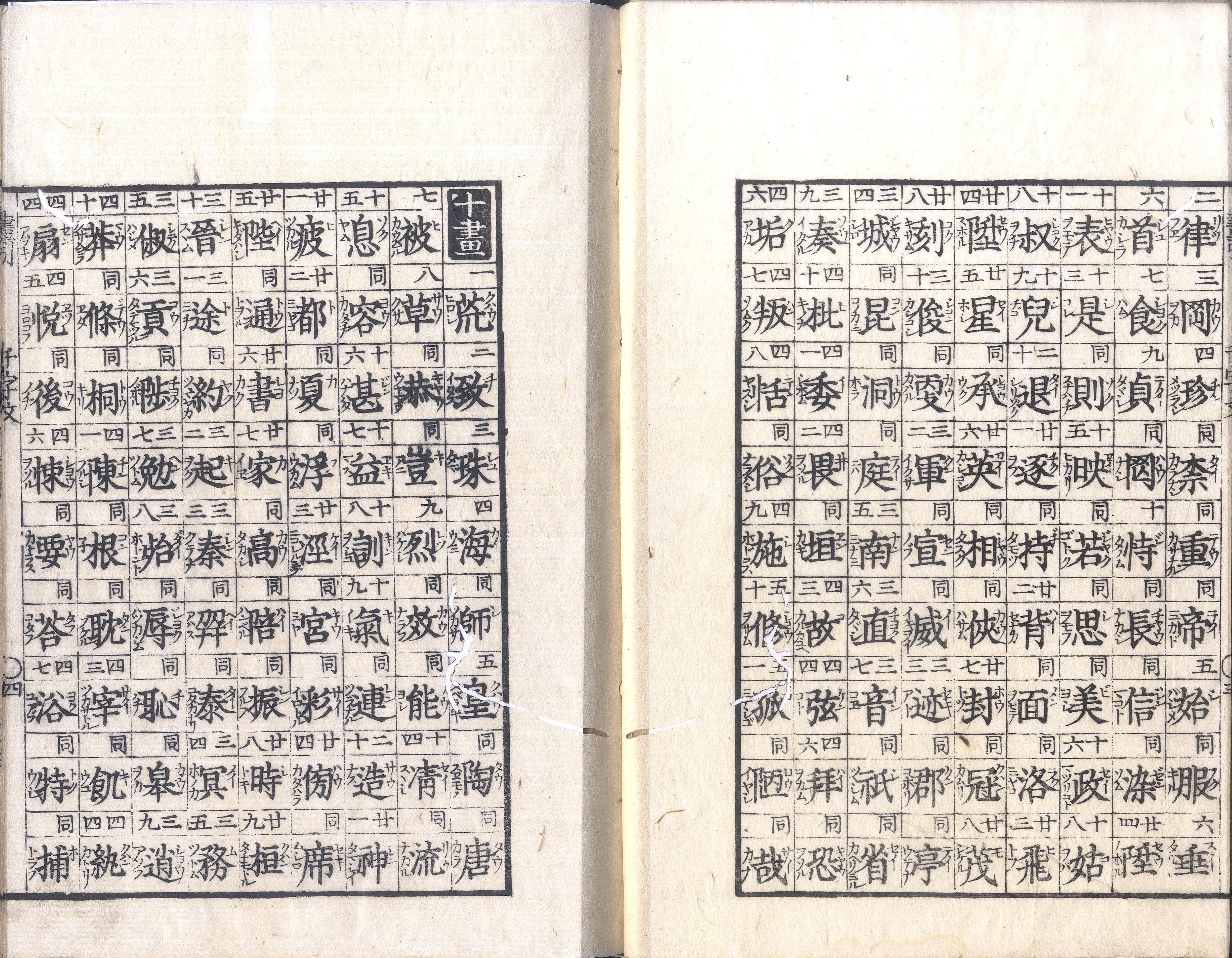 【備考】分類「書道」。天保7年板も抄録した。周興嗣の『千字文』を楷書・小篆・大篆・署書・摸印・隷書・行書など様々な書体で綴り、頭書に「偏冠尽」。SE02311