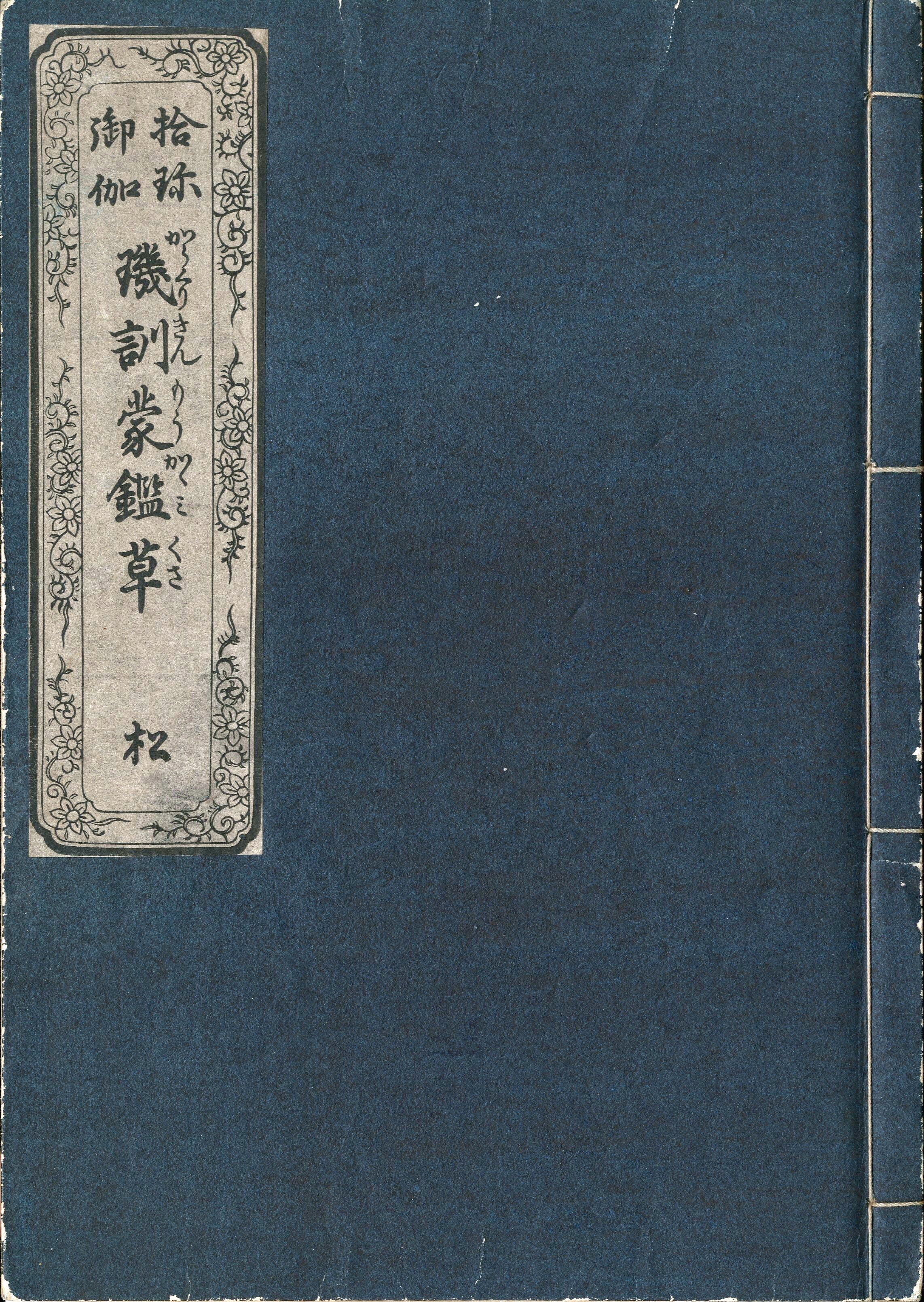 【備考】分類「遊戯」。稀書複製会6期木版複製本。当時流行のからくり芝居の機巧を解説したもので 上巻にその舞台面を描き 下巻にその各々の内部構造を示してゐる(国文学研究資料館DB)。『璣訓蒙鑑草』は、江戸初期の〈からくり〉解説書。1730年(享保15)刊。多賀谷環中仙撰。川枝豊信画。〈拾珍(しゆうちん)/御伽(おとぎ)〉と角書(つのがき)がある。2巻3冊。上巻で当時の代表的な〈からくり〉28種の図を掲げ、下巻でそれぞれにつき図解・種明しをした書。〈からくり〉の装置は滑車やてこを利用した糸からくりが9種を占め、ポンプ、ばね、歯車、水銀を用いたものが各1種、その他は奇術、手品に類するもので、技術的には単純にして幼稚なものである(コトバンク)。/上巻で当時の代表的な〈からくり〉28種の図を掲げ、下巻でそれぞれにつき図解・種明しをする。〈からくり〉の装置は滑車やてこを利用した糸からくりが9種を占め、ポンプ、ばね、歯車、水銀を用いたものが各1種、その他は奇術、手品に類するものである。「いろは人形」「太鼓」「道成寺」「小かぢ」「天鼓」「蟻通玉」「百挺からうす」「人形を人にかくさせ人形が占ふ」「三本の扇の内人の取りたるを占ふ」の諸からくりはともに糸からくりであり、糸の所在を分からないようにし不思議にしてある。また、「人形吹矢をふく」「人形はなれて向ふへ行又はたらく」「人形犬に乗る」「人形文字を書く」「三段がへりかるわざ人形」の諸からくりは機械人形。さらに、「天神記僧正の車」「唐人の笛吹き」「人形三味線をひく」「などのからくり人形は、人間(子供等)が隠れて入り機械人形を装うもの。この他、ろくろを使用した「首ひき人形」「や一日に四十里余走る人力の自動車「陸船車」などが珍しい。また水からくりでは五色の水をあつかう「錦竜水」や、ひっきりなしに水の落ちる「異竜竹」「水の中へ人形つかひながらはいる」「茶釜の水茶となる」などからくりとして優れている。「玉子ひよことなり」「ひよこ籠へ入り鶏となる」仕掛け物、竹田の独楽の他、大魔術的なものとして奈落を利用する「五寸の箱の中へ人形を使いながら入る」「鳩、鉢の子に入り仏となる」などのからくりがある。昭和4年の稀書複製会本は後の含霊軒発行の松竹梅(三冊)を復刻したもの(クラシックマジック研究ブログ参照)。