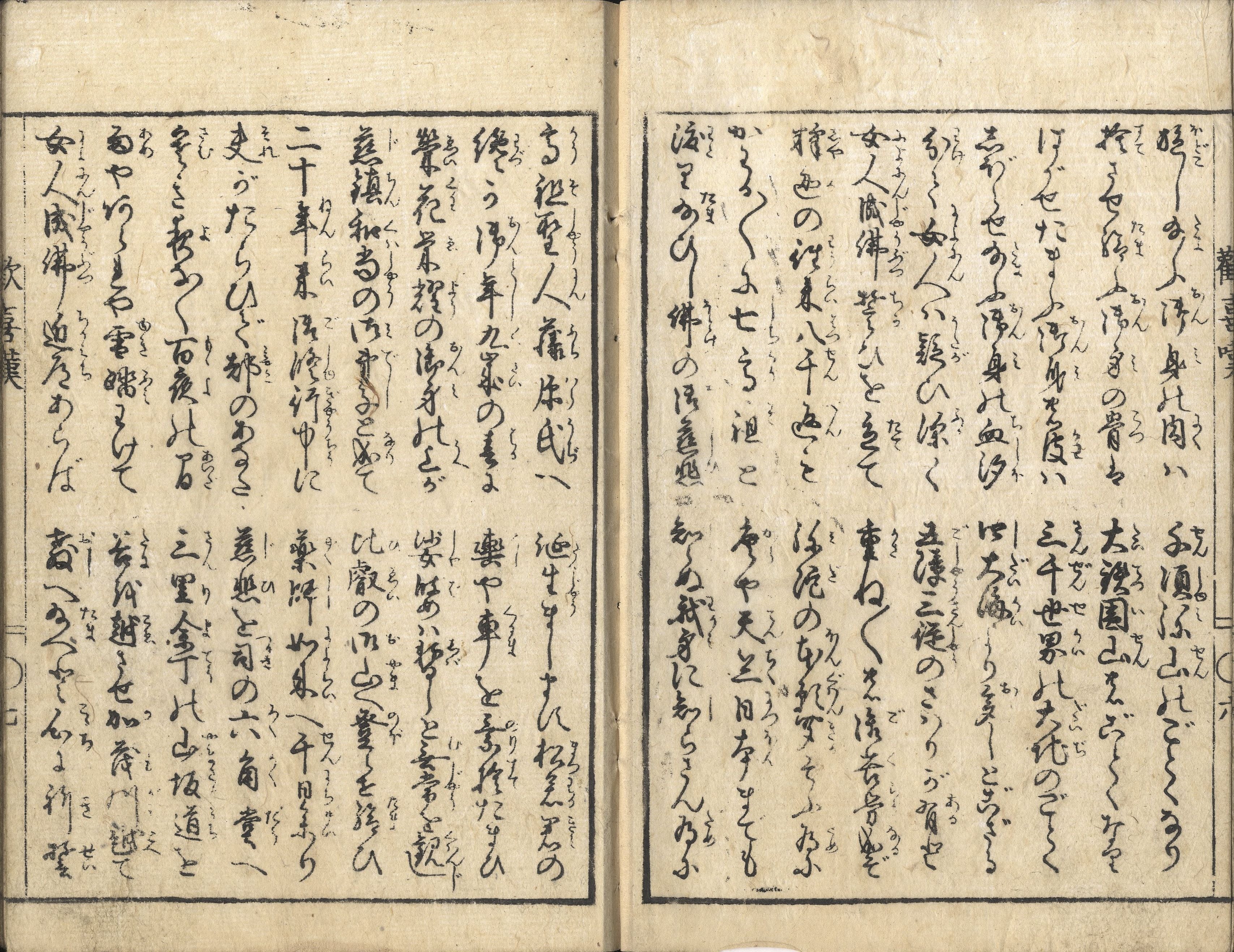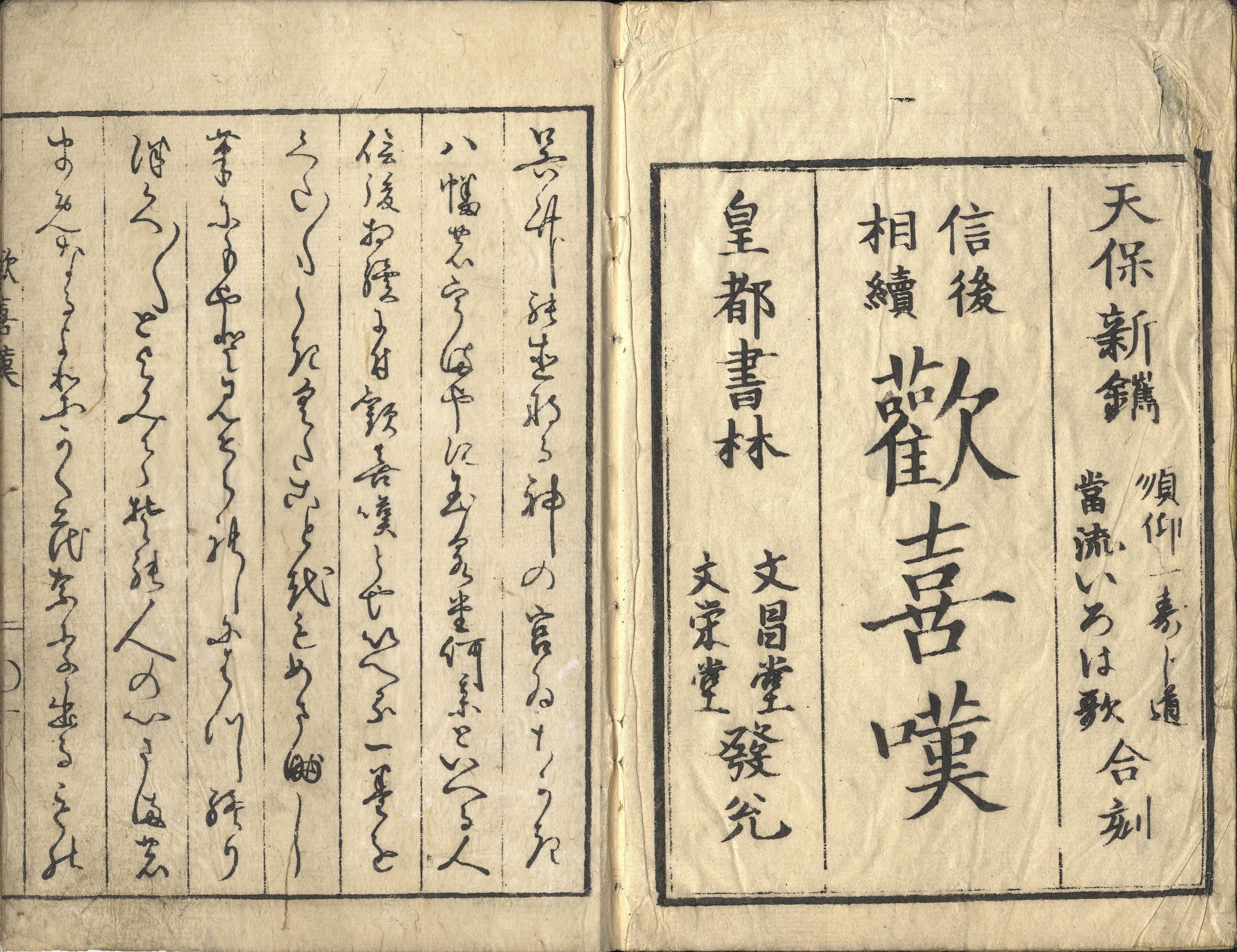 【備考】分類「仏教」。「歓喜嘆」は「茶呑咄しの意味」「御寺参り小言の弁」「親の異見聞違の息子」「十九、二十の願の意味」「口にはいはれぬ心に知つた梅の香ひ」を収録。後半に「御当流順仰一すじ道」「御当流いろはうた」を附録。SE02427