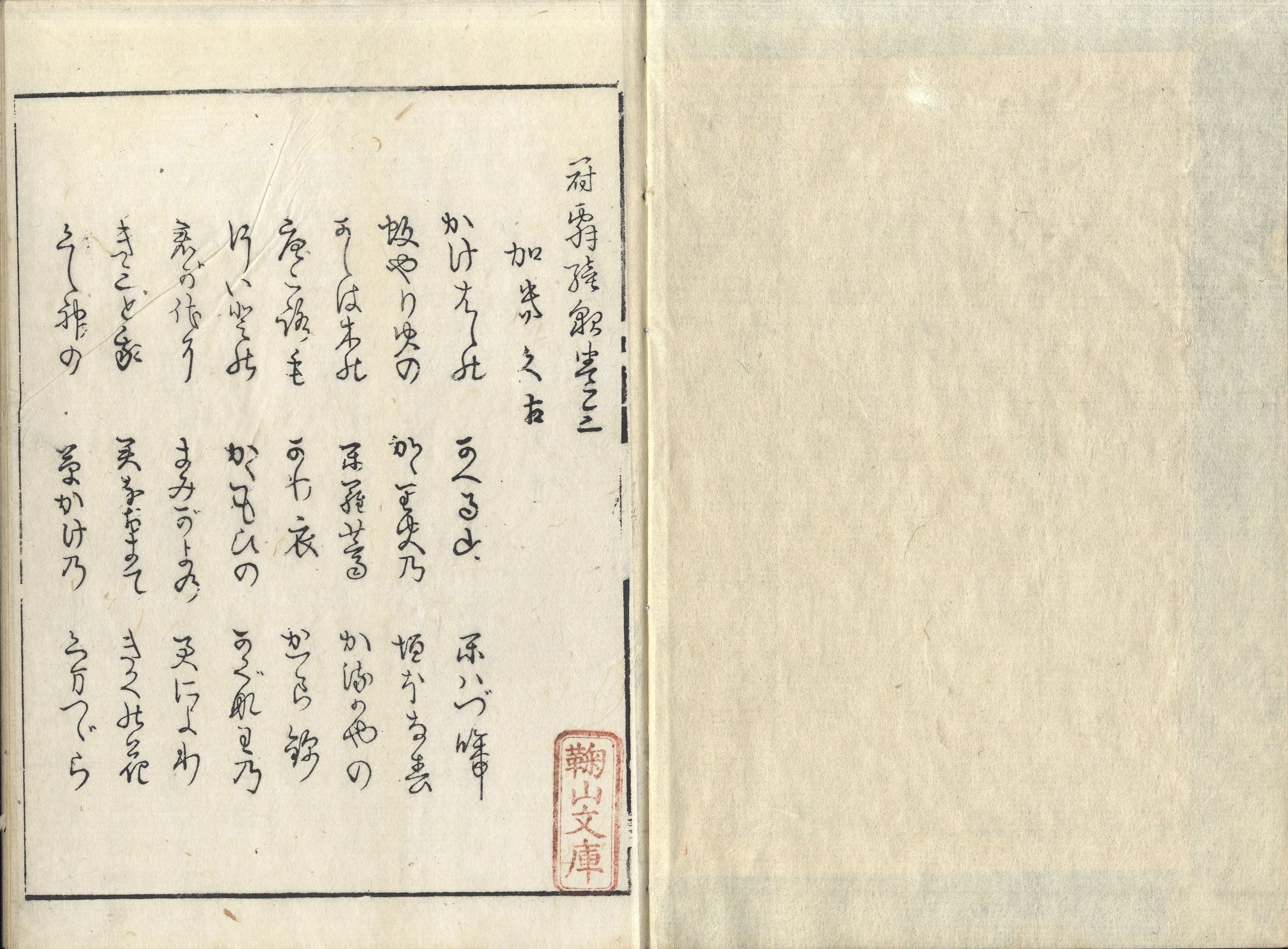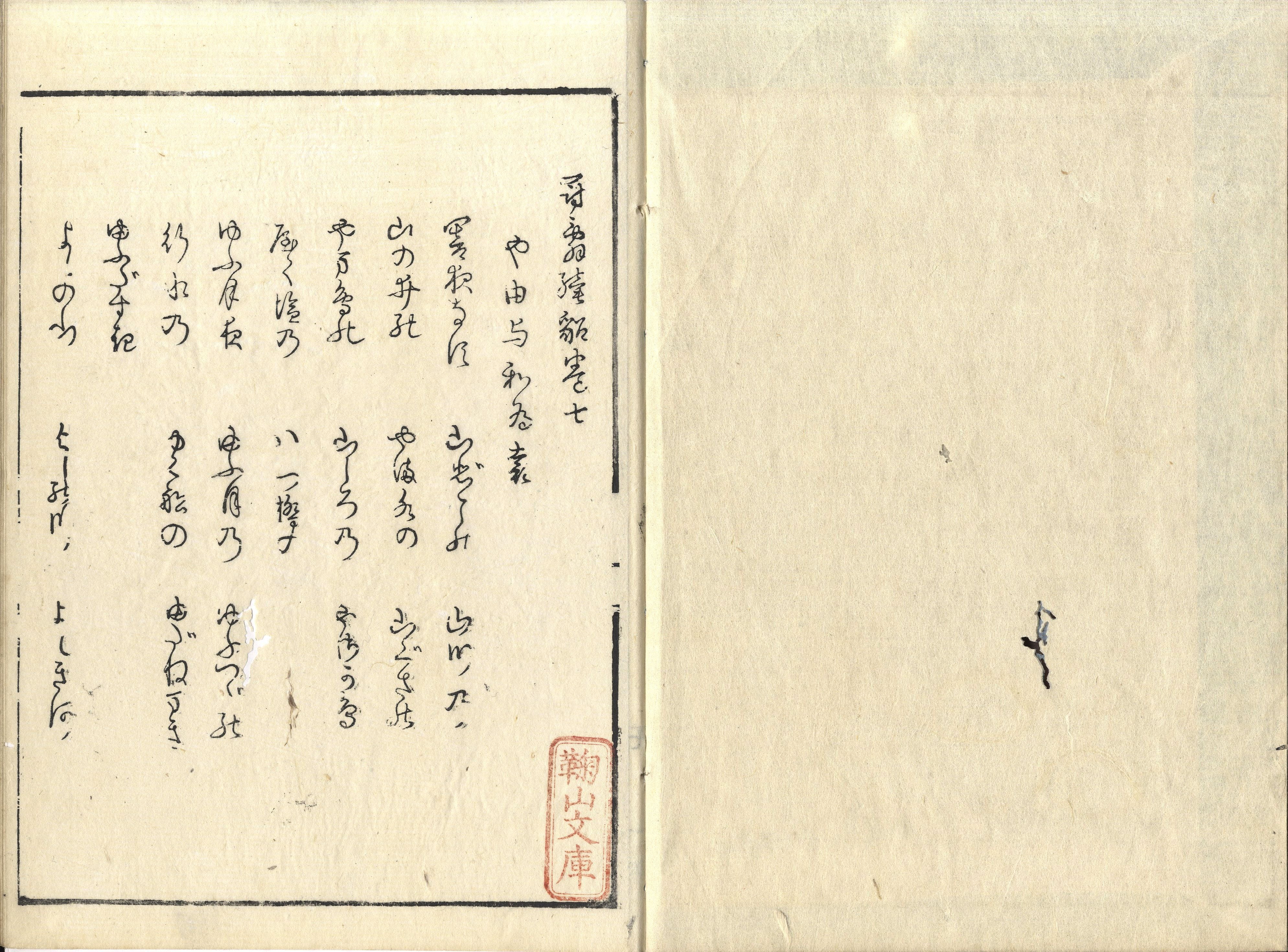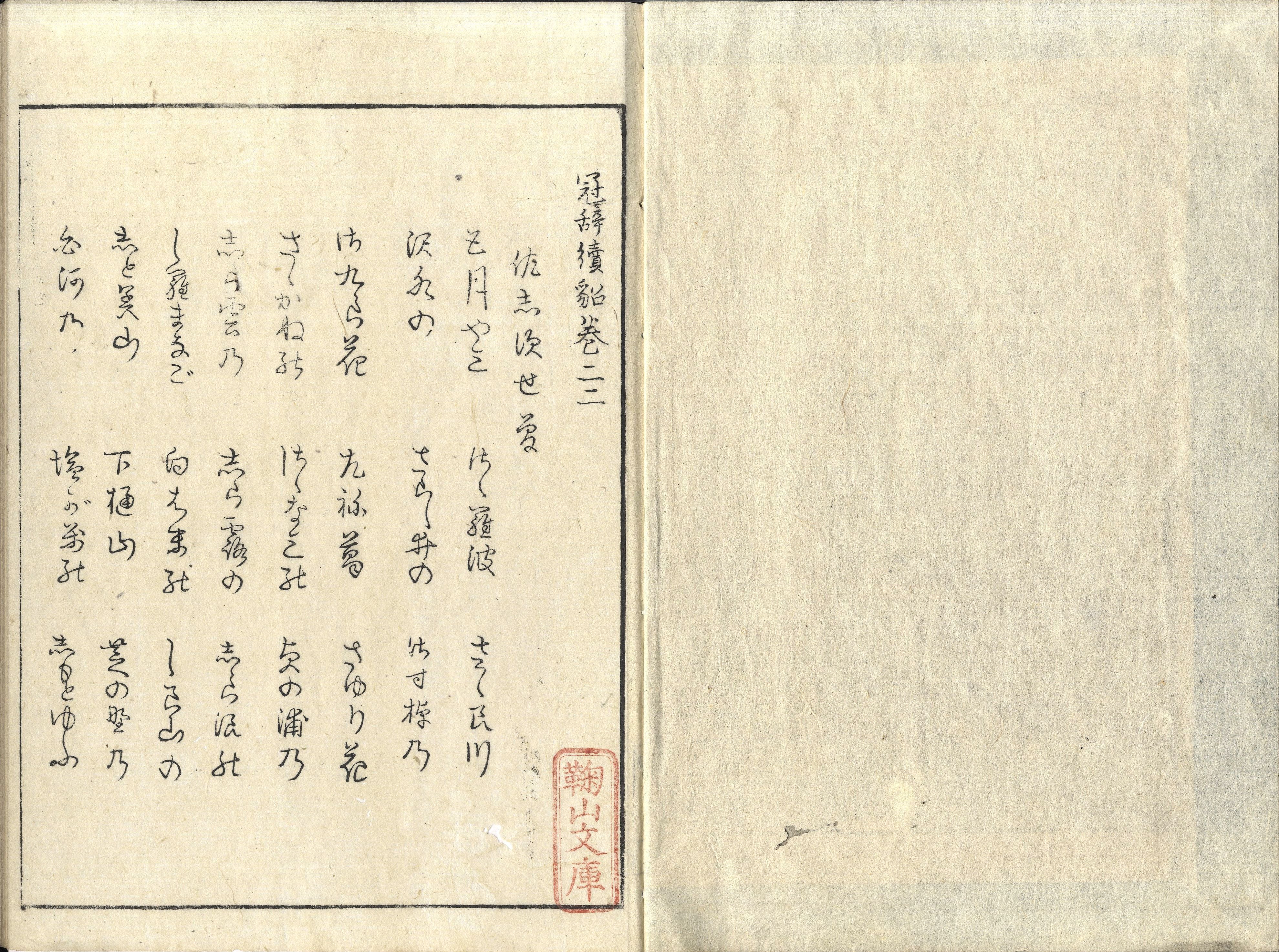 【備考】分類「語学」。別本も抄録した。『冠辞続貂』は『雨月(うげつ)物語』で知られる上田秋成(1734-1809)の著作。享和元年(1801)9月に刊行された全7巻の枕詞の解説書。「冠辞」とは枕詞のこと、「続貂」は賀茂真淵の『冠辞考』(宝暦7<1757>刊)の続編の意味。板木の文字も秋成自身の手によるもので、『冠辞続貂』は明治時代半ばまで本板木を使って印刷されていた(奈良大学博物館HP)。勝倉壽一「『冠辞考続貂』について」によれば、『冠辞考』は枕詞(真淵が「冠辞」と命名)350語を掲出して出典・釈義を考証したもので、枕詞研究史上の画期的な業績とされるもので、秋成の『冠辞考続貂』は340語を掲出するが、『冠辞考』と重複する42語を除くと、新たに298語の枕詞を加えて『冠辞考』の欠を補うものであった。真淵は出典の殆どを記紀・万葉から得ているのに対し、秋成は298語のうち『万葉集』から105語、記紀・風土記から19語を新たに選び、また、王朝文芸を出典とする174語を加えており、秋成は、中古の文献を博捜して枕詞の全容の把握に努めたことが分かる。真淵は万葉・記紀を、秋成は王朝和歌集を考証の基礎に据えるという研究手法の明確な相違が見られる。SE02452