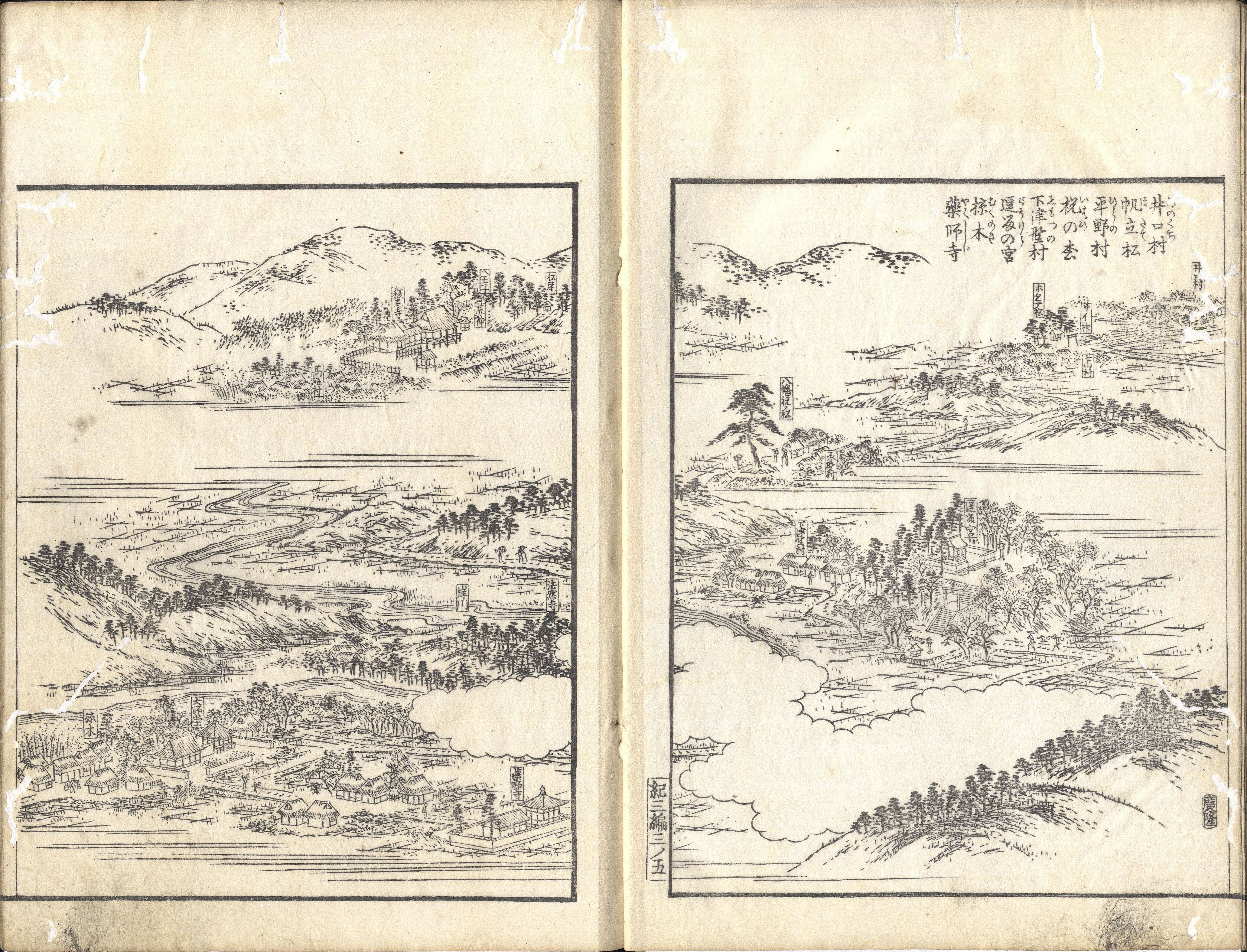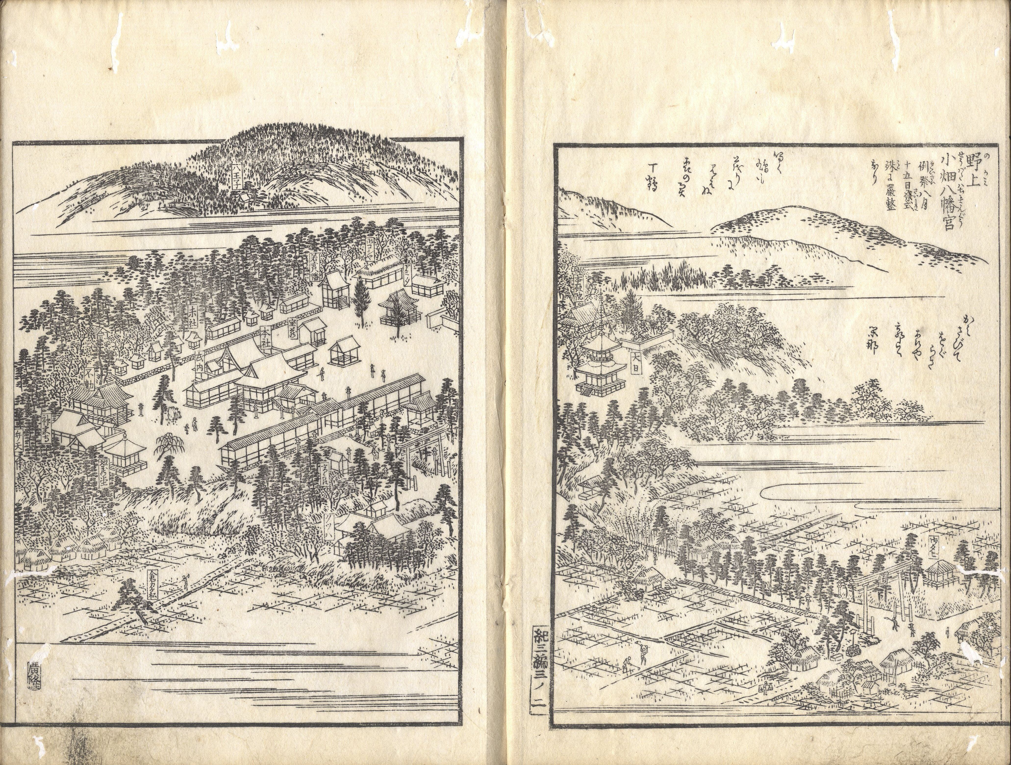 【備考】分類「地誌」。江戸時代後期に和歌山城下の書肆・帯屋伊兵衛(高市志友)によって企画された紀伊国全体に関する地誌で、紀伊藩領だけでなく高野山寺領についても掲載する。初編と2編(高市志友編)は文化9年(1812)、3編(加納諸平編)は天保9年(1838)、後編(加納諸平・神野易興編)は嘉永4年(1851)に、それぞれ刊行されている。単に名所だけでなく、広範な地名や寺社について掲載しており、『紀伊続風土記』とならび、江戸時代後期の紀州に関する基本的文献の一つに数えられる(文化遺産オンラインHP)。3編は、1巻「那賀郡」、2巻「伊都郡」、3巻「那賀郡・伊都郡」、4-7巻「高野山」を収録。SE02495