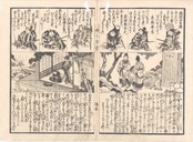 【作者】緑亭川柳(川柳5世)作・序。葛飾為斎(口画1-10丁)・一陽斎国芳(11-20丁)・玉蘭斎貞秀(21-30丁)・一雄斎国輝(31-40丁)・一猛斎芳虎(41-50丁)・一陽斎豊国(51-60丁)画。