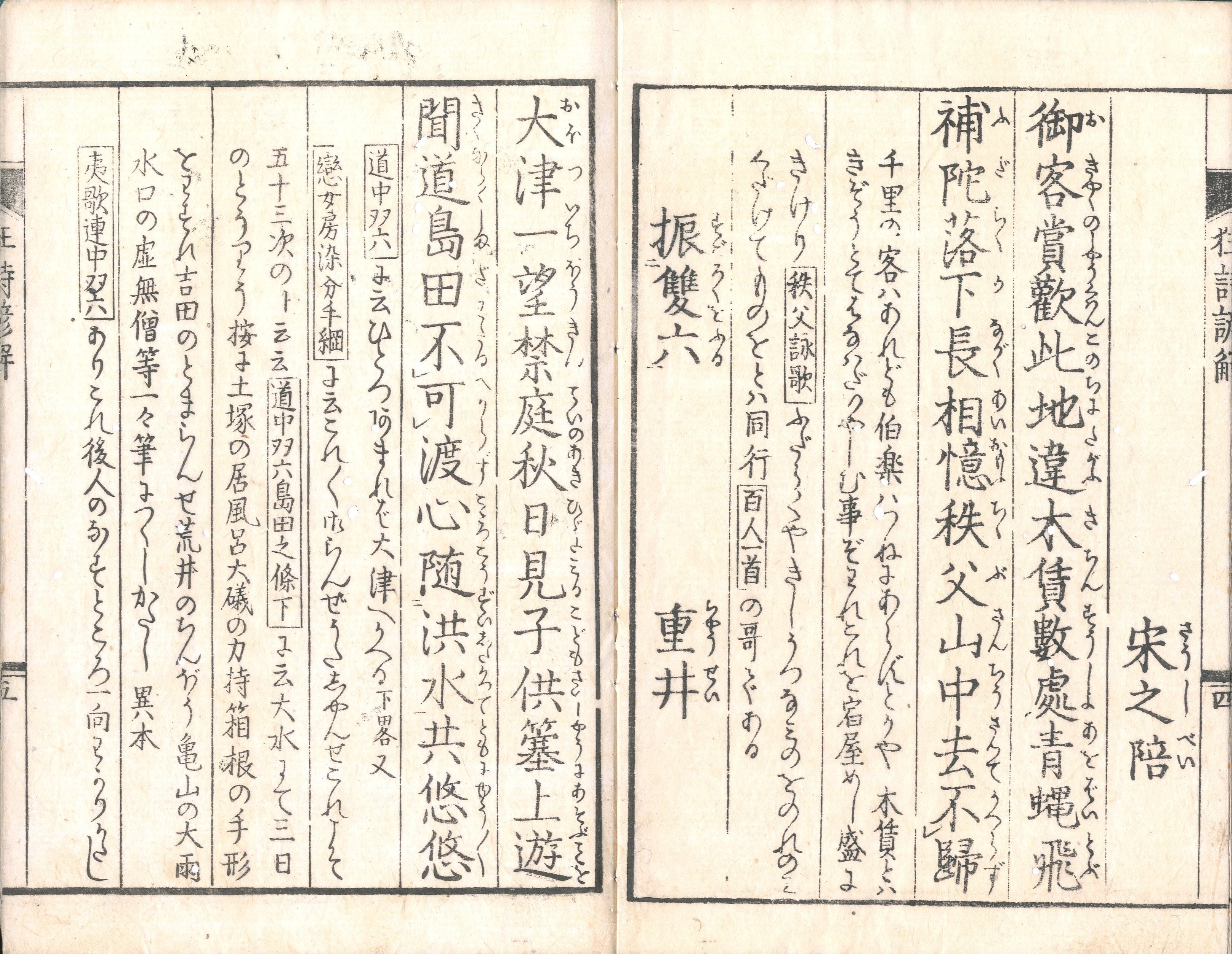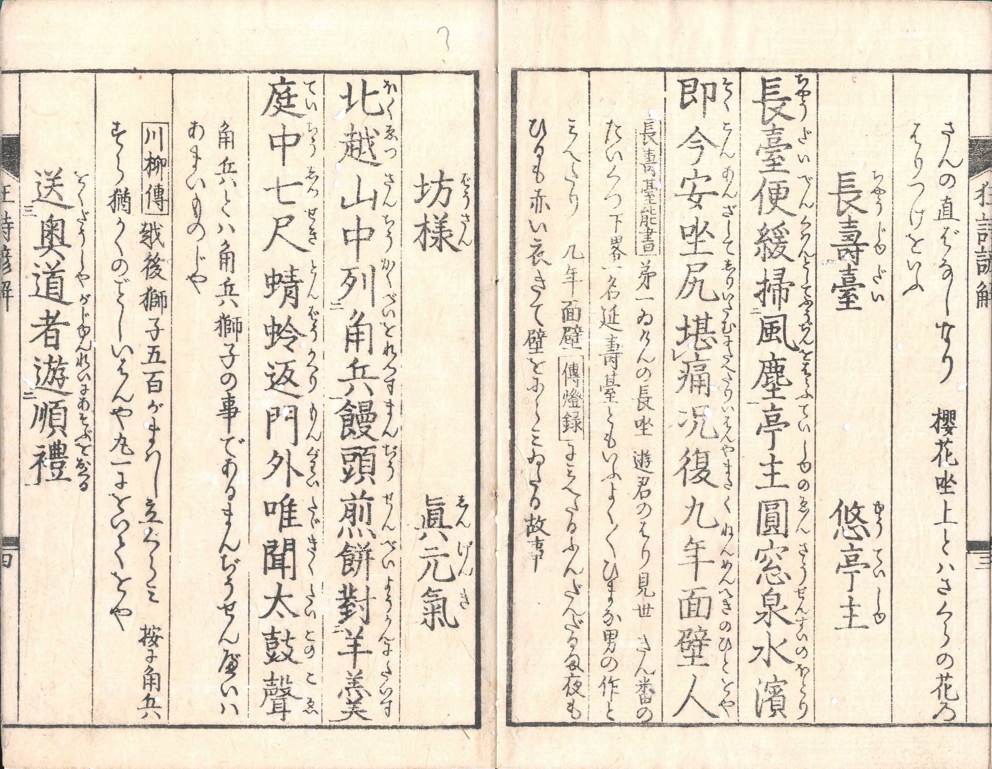 【備考】分類「洒落本」。『唐詩選』のパロディ狂詩。王昌齢の七言絶句「青楼曲」を踏まえたパロディ「蒸籠曲」を諺解するという趣向。「蒸籠曲」を神田明神の祭礼山車「頼光山入」に取材した詩と解釈し、大江山の頼光伝説を趣向とした黄表紙として唐来三和・朋誠堂喜三二・菱川春童画の作品を引く(浮世絵文献資料館HP)。