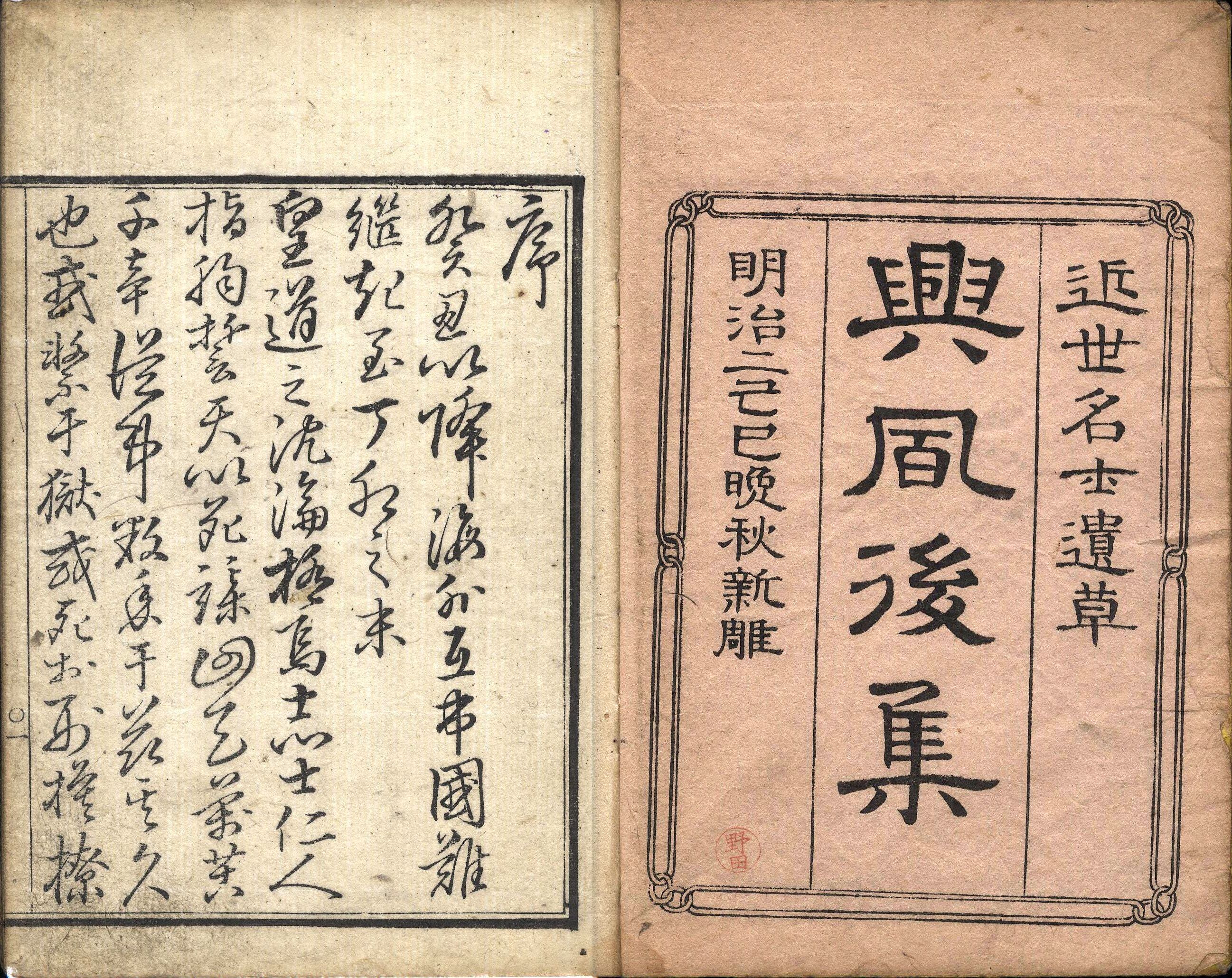 【年代等】江戸後期刊。[萩]松下村塾蔵板。後集:明治2年7月、原子道序。明治2年7月刊。[京都]田中屋治兵衛板。