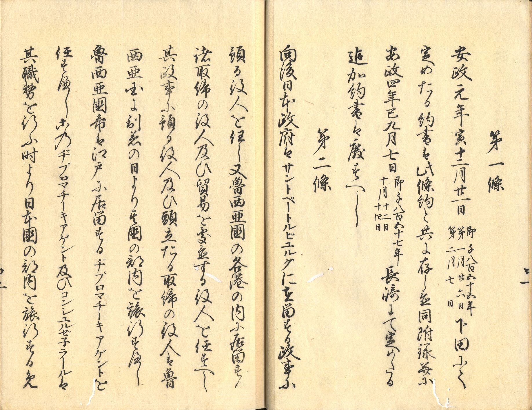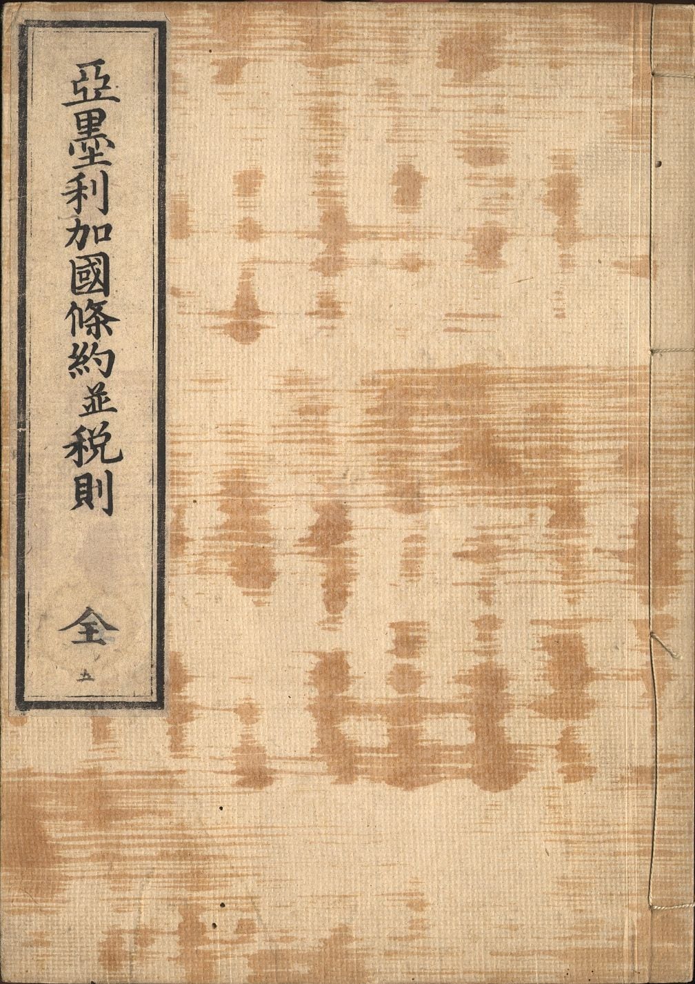 【備考】分類「外交・貿易」。魯西亜国、仏蘭西国、英吉利国、阿蘭陀国、亜墨利加国の5カ国との条約・税則。SE02792