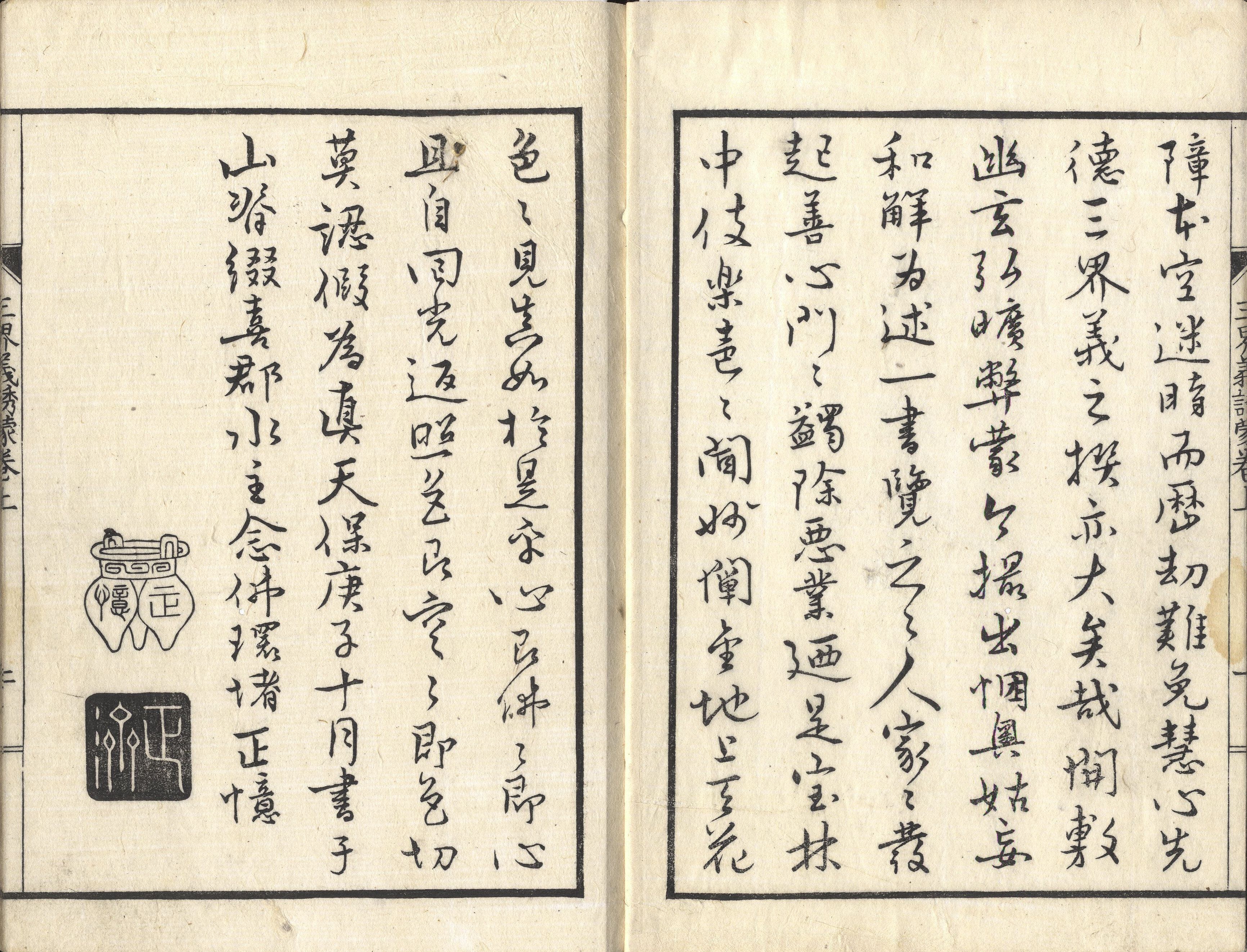 【年代等】天保11年10月、環堵正憶序。安政3年6月免許・刊。[京都]永田調兵衛(永田文昌堂)板。