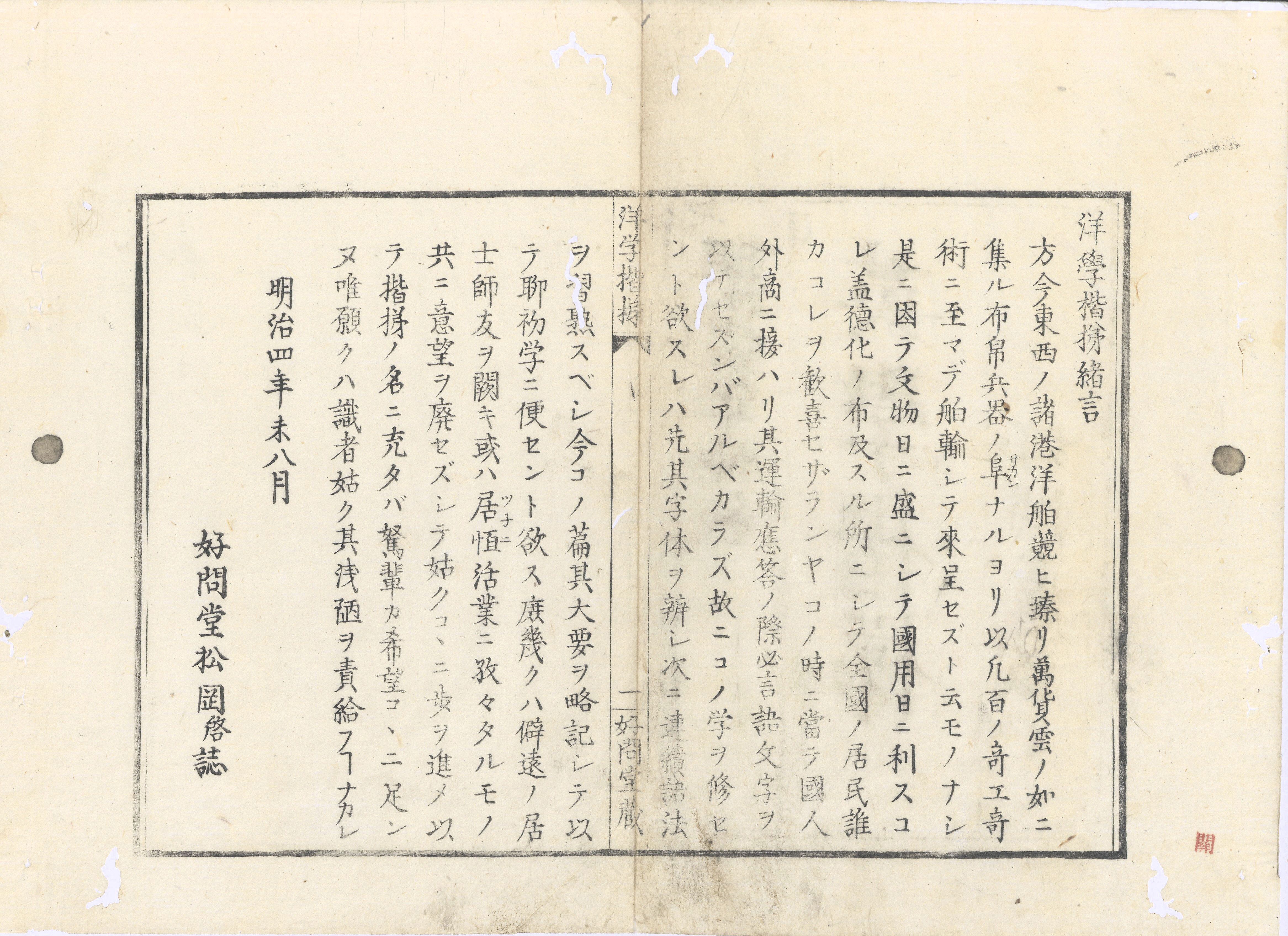 【年代等】明治4年8月自序・刊。[京都]著者蔵板。小川金助売出。