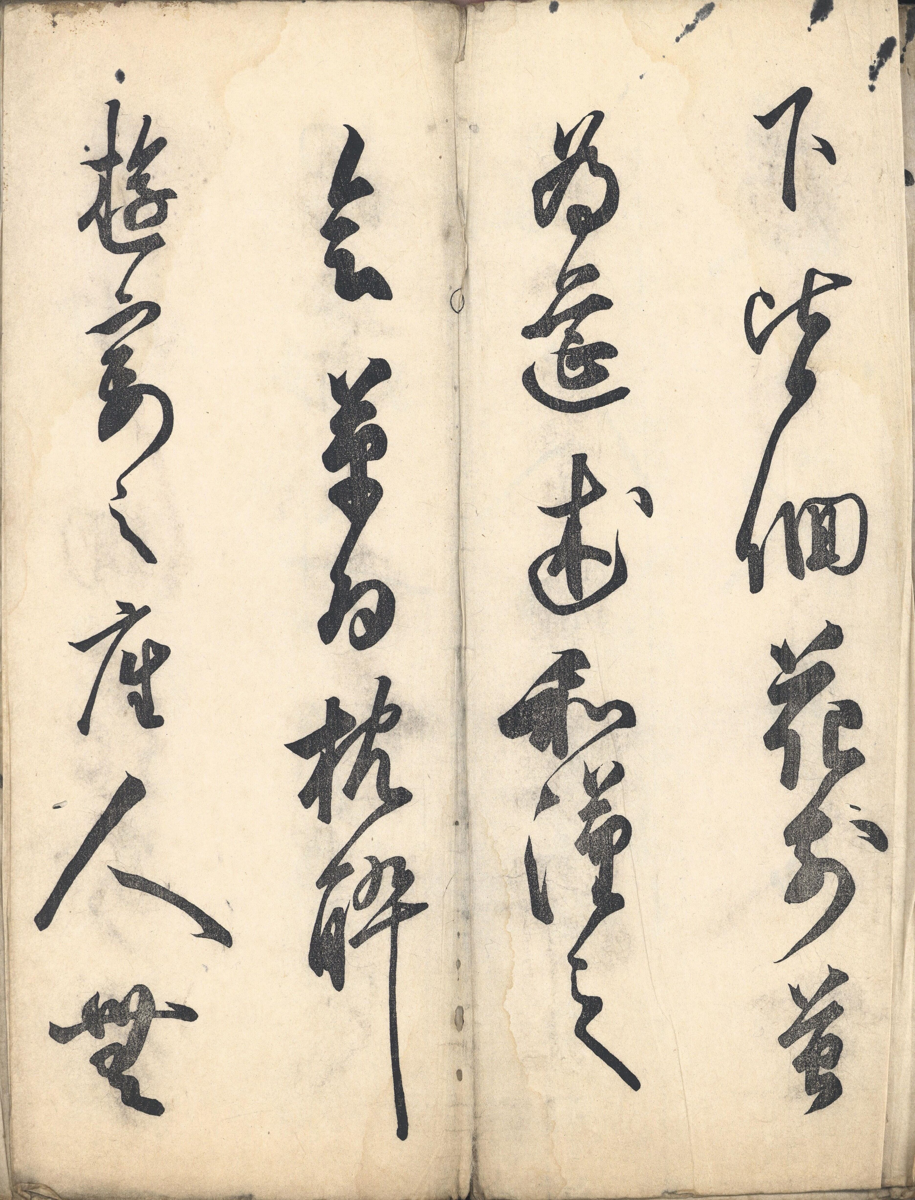 【備考】分類「往来物」。書名は本文冒頭と題簽残存部から推定。『今春帖』は、「今春上洛…」で始まる文章で、春の京都遊覧の風景を綴った折手本で、本文を大字・2行・無訓で記す。巻末に「いろは」と「数字」を付す。SE03063