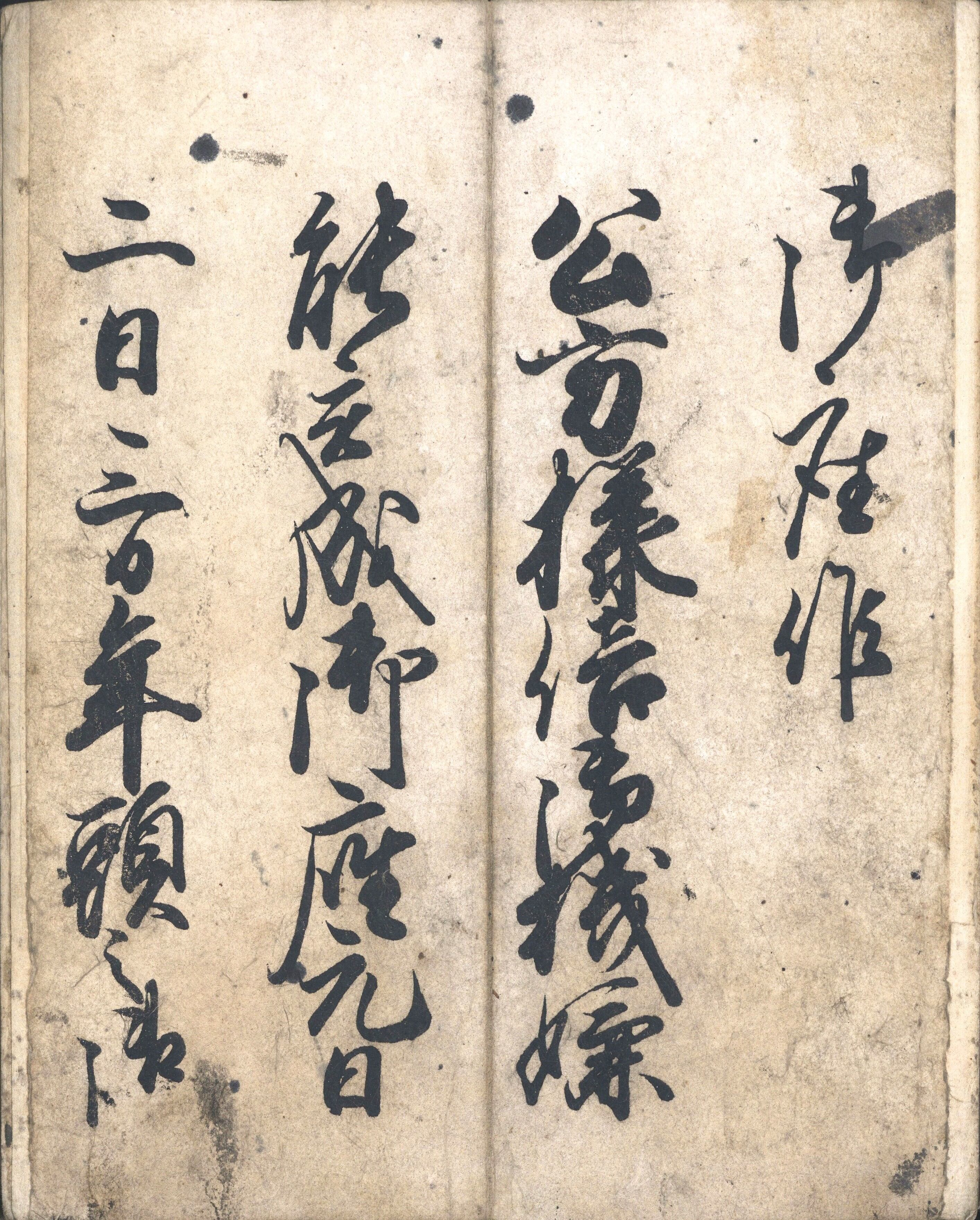 【備考】分類「往来物」。『玉置消息手本』は、将軍宛ての披露状(新年祝儀状、薯蕷献上の書状等)から、『易経』講釈の聴聞の命に対する礼状(柳沢出羽守宛ての披露文)までの7通を収録した折手本。ただし、識語・刊記等が欠けており例文数も少ないことから、現存本は零本とも思われる。1折(2頁)に大字・4行・無訓で記す。SE03078