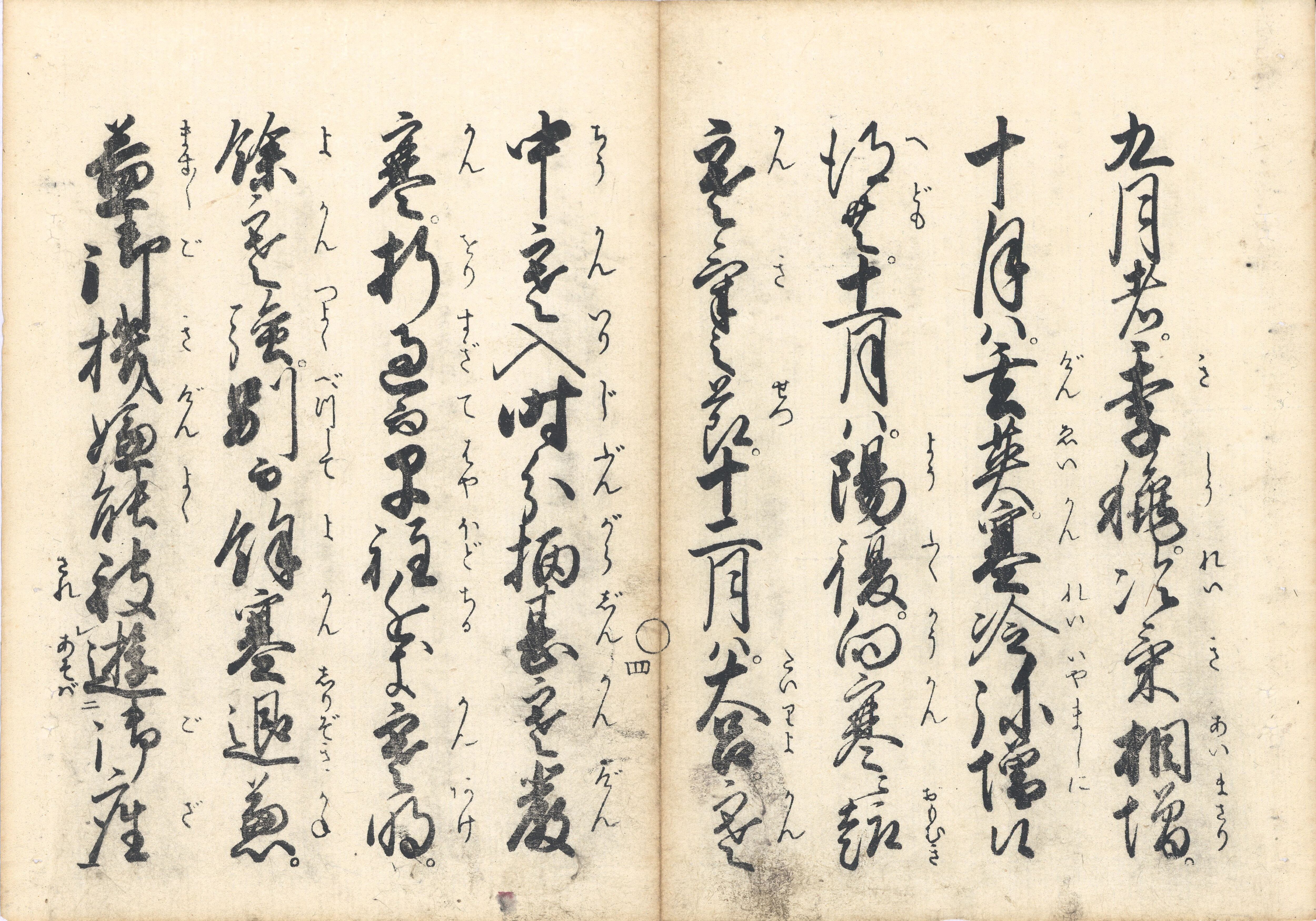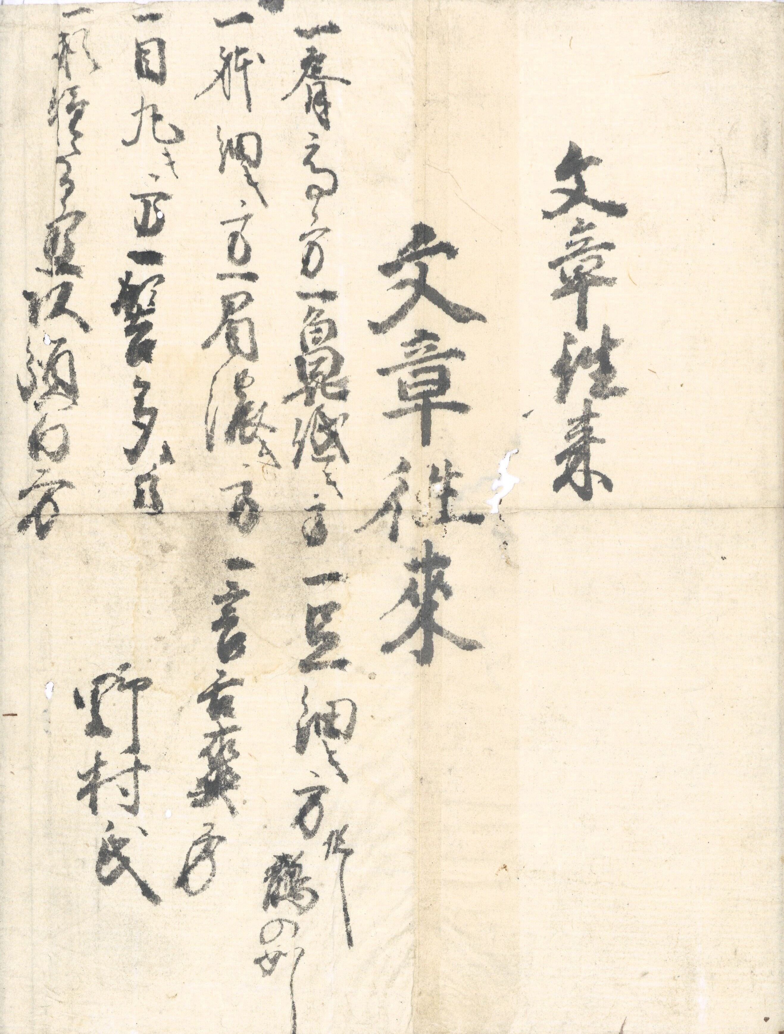 【備考】分類「往来物」。文政3年板(2種)・天保4年板・天保12年板の4種を全冊収録した(文政3年板の1本には冒頭に書袋も収録した)。『文章往来』は、享和2年刊『改撰消息往来』の改題・改訂本。『改撰消息往来』本文の語句を若干改めた本文を大字・4行・付訓で記す。本書見返には2種あり、初印には「此書は字尽の類を多くあつめ、絹ぶるひにて要用の文字をふるひ抜、誠に士農工商共に日々入用の字のみ多く集め、手紙御書なされ候節、早速字引替にも相成、用文章両用、新趣向之本にて、実に万民重宝の本なり」と記す。従って、「累語文章往来(消息往来)」型の往来物は用文章と消息用語集を兼ねた教材として用いられたことを示唆する。SE03087