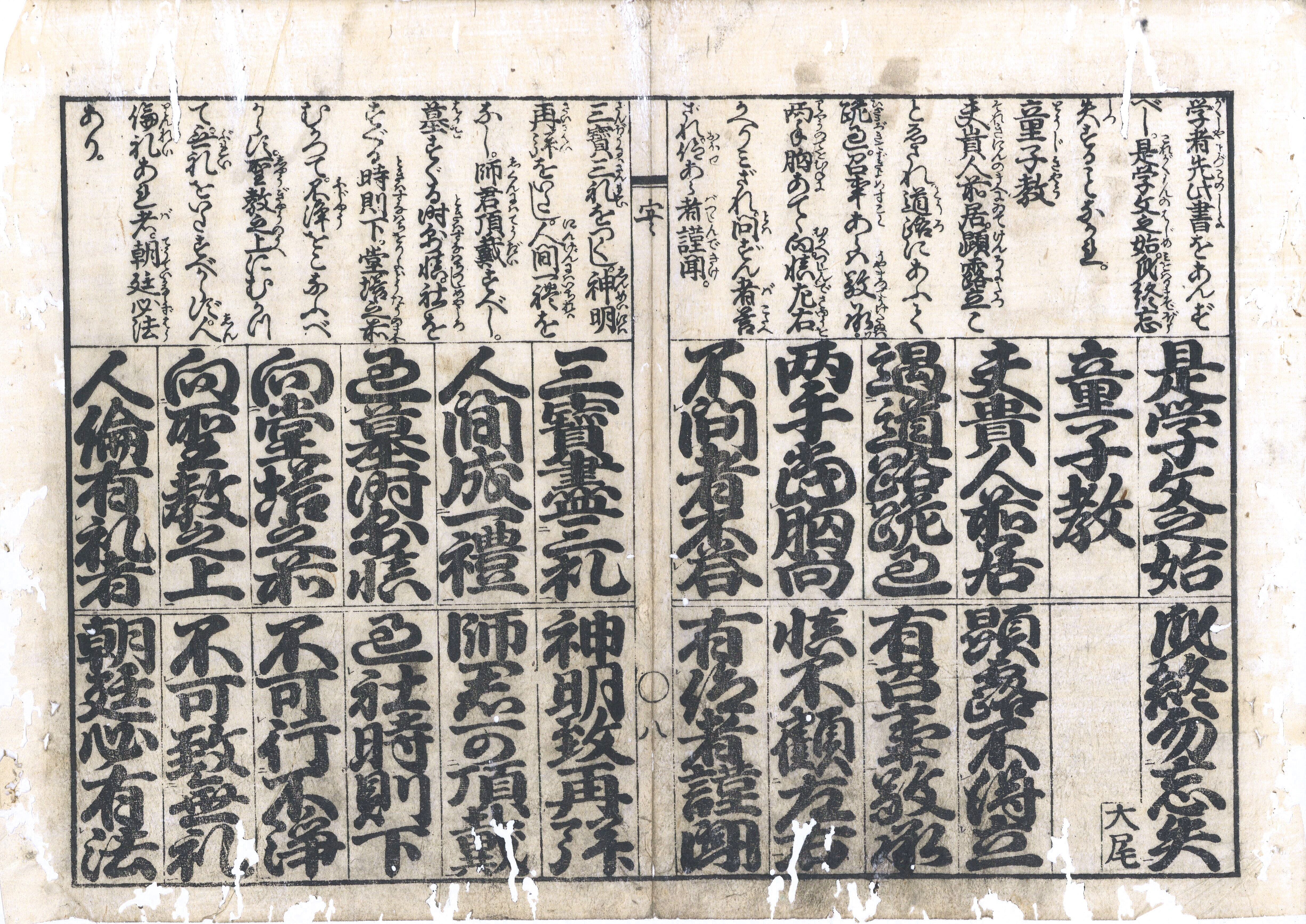 【備考】分類「往来物」。同板2種と改編本1種を全冊袋綴じ展開収録した(2冊目は書袋も収録)。『〈絵図註入〉教実語教〈独講釈読方入〉』は、文化板の巻末広告にもあるように、下河辺拾水書、寛政7年刊『〈絵図註入〉教庭訓〈独講釈読方入〉』と同とじ趣向で、『実語教・童子教』の本文を無訓・無点の大字で下段に掲げ、上段に本文読方(書き下しに直した付訓本文)を載せ、さらに、本文要語の図解を多く交えた往来物。広告文には「師匠いらず」「絵図入」と宣伝する。SE03099