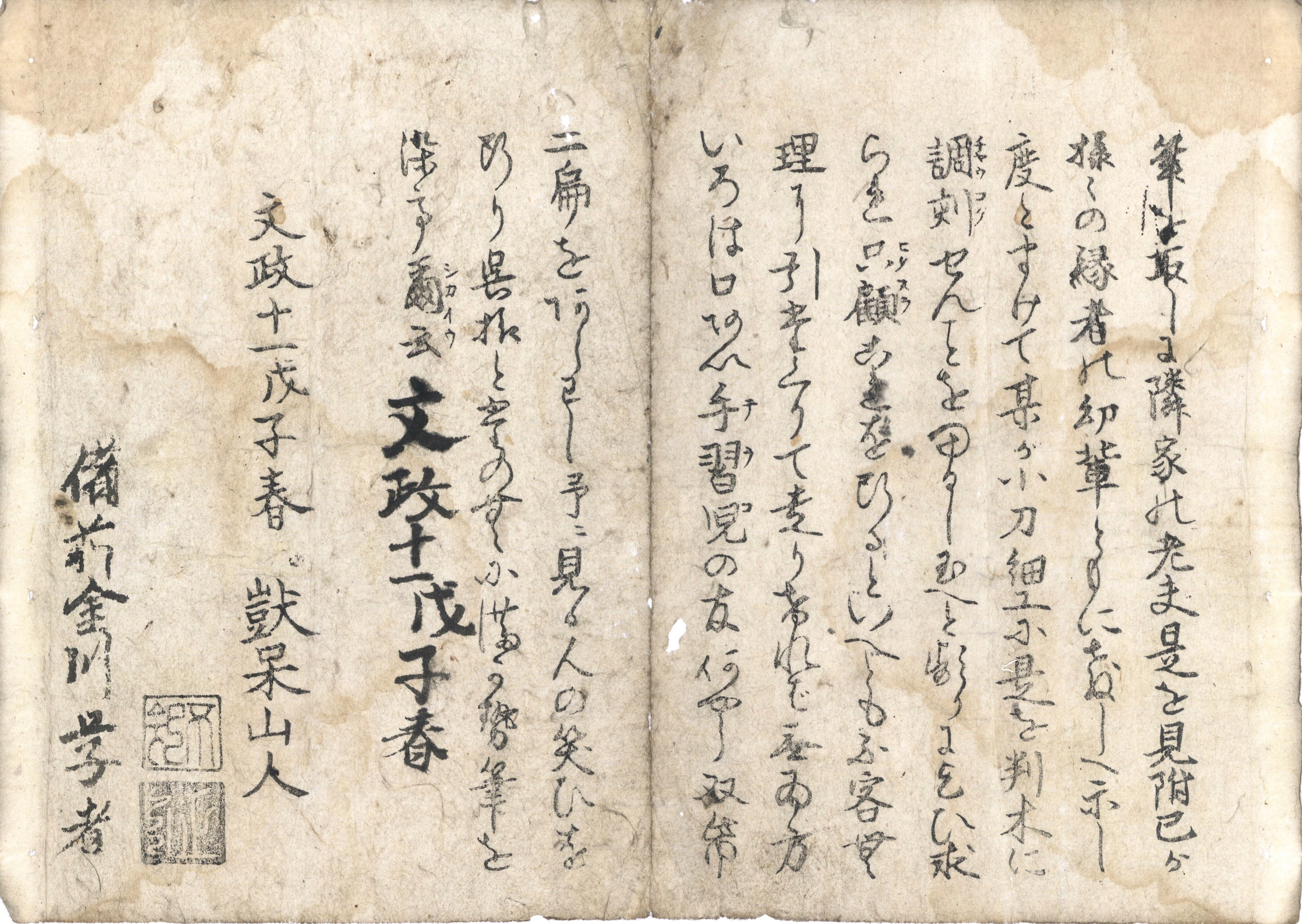 【年代等】文政11年春、呆山人序。文政11年春自跋・刊。[備前]艸上堂板。