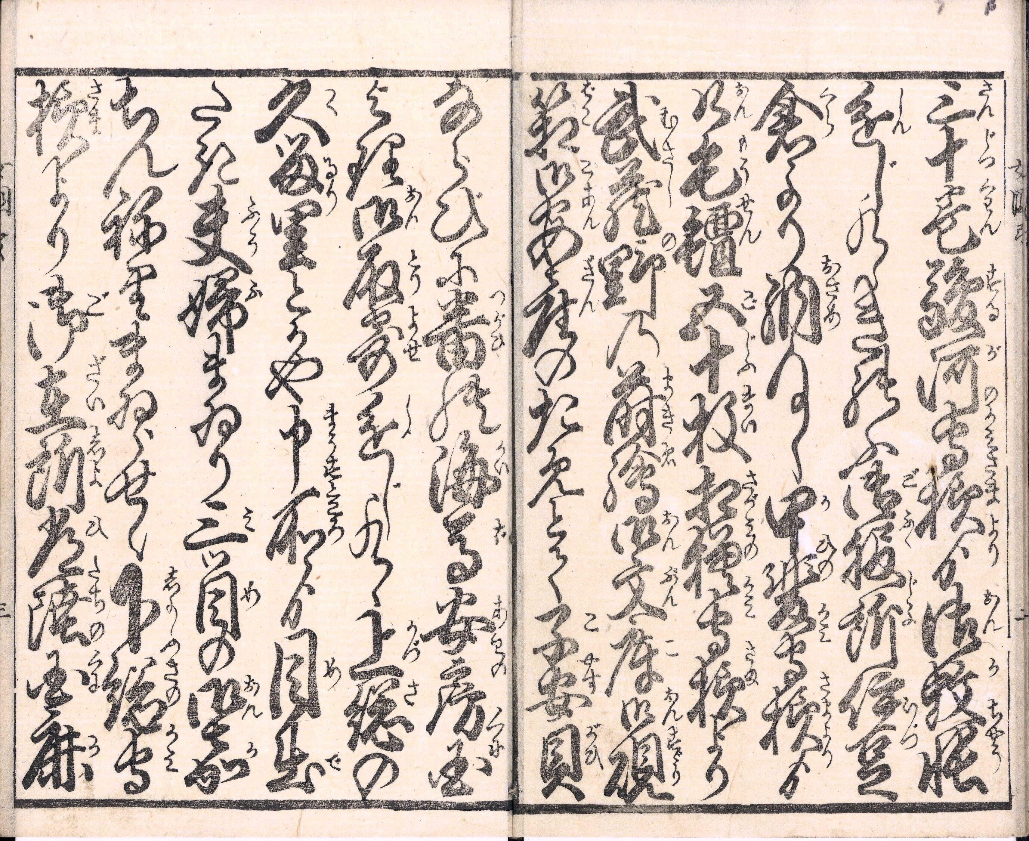 【備考】分類「往来物」。『〈改正〉女国尽し[婚礼女国尽・女国尽]』は、滝沢馬琴作『国尽女文章』と同じ趣向で日本の国名や名所・名物を紹介した往来物。底本は、「一筆申あげまいらせ候。今度、御姫様、山城守様御媒にて、大和守様へ御ゑん組御整ひ遊ばし、御結納の御祝儀進じられ候。御互ひに御めでたく有難、扨、だんだん御道具も揃ひまいらせ候…」と起筆する婚礼祝儀状の体裁で、諸国名とその名産品を列挙する。表紙見返しに「五常教訓歌」、裏表紙見返しに「源氏物語目録」「着類・道具・食物詞づかひ」を載せる。SE03165