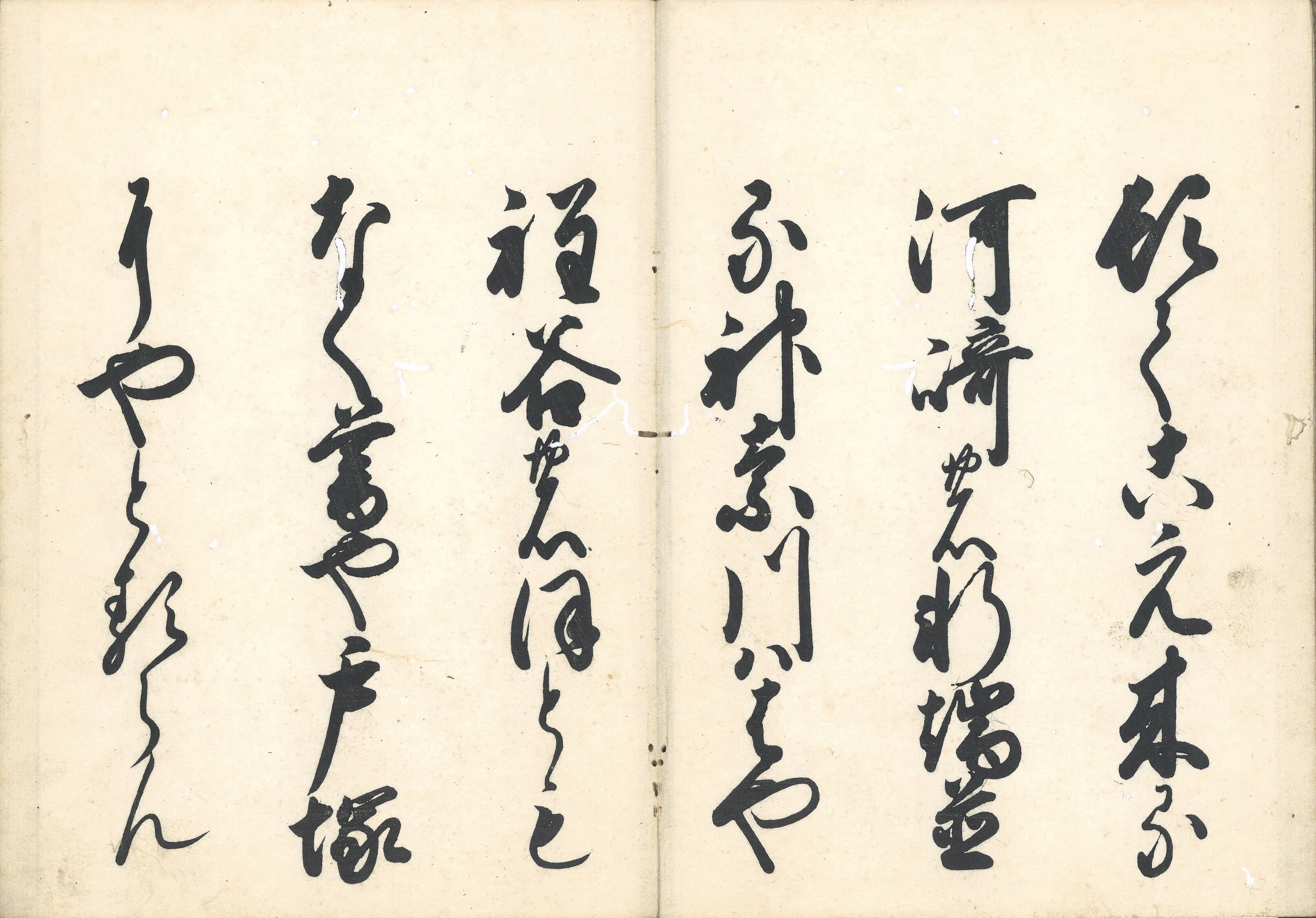 【備考】分類「往来物」。『東海道往来(林博教・折本)』は、流布本『東海道往来』を、大字・3行・無訓で記した折本の往来物。『東海道往来』は、『宝暦四年書目』に載る岡芳玄作『東海道往来』が初板本と思われるが未発見。また、後世流布本の最初と思われるのが、『江戸出版書目』に載る安永八年頃刊『東海道往来』(花屋板)である。内容は、「都路は、五十余にみつの宿、時得て咲や江戸のはな、浪静なる品川や、頓(やが)てこえくる河崎の、軒端(のきば)ならふる神奈川は…」で始まる七五調・文字鎖の文章で東海道五三次の宿駅名を列記し、最後に女文形式で「…はなのにしきの九重に、こゝろうきたつみやこそと、君の寿きいわゐたりけり。かしく」と結ぶ。SE03224