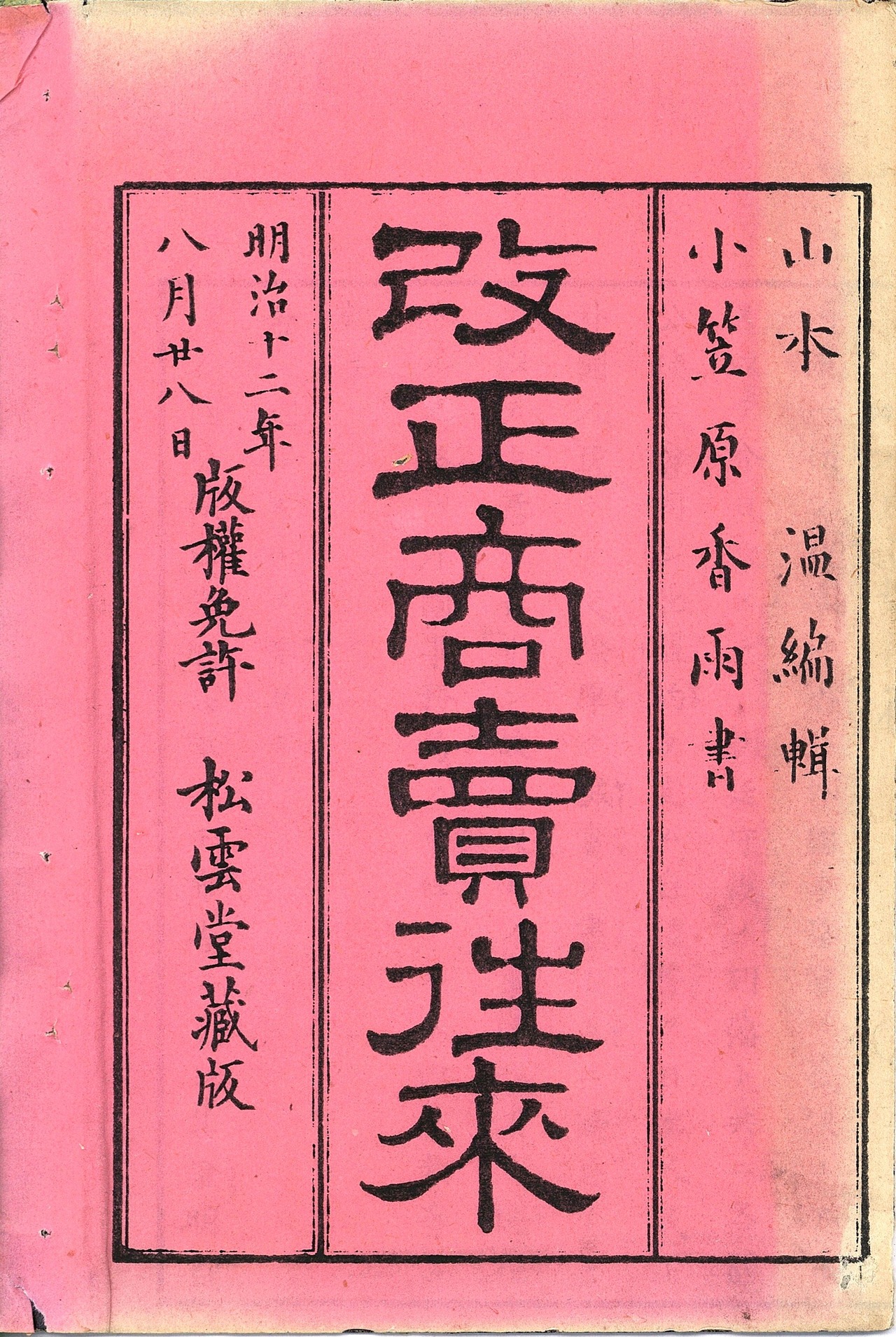 【年代等】明治12年8月版権免許。明治12年10月刊。[大阪]鹿田静七(松雲堂)板。